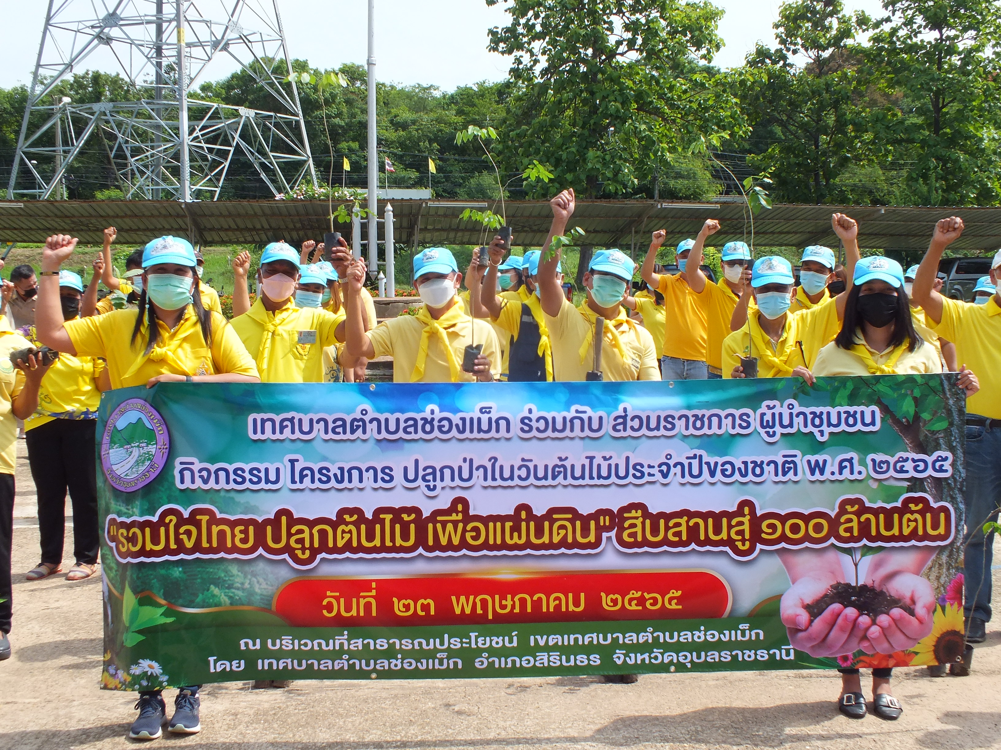 เมื่อวันจันทร์ ที่ 23 พฤษภาคม 2565 เวลา 09.30 น. นายบุญส่ง ทองเจริญ นายกเทศมนตรีตำบลช่ององเม็ก พร้อมด้วย คณะผู้บริหาร ข้าราชการ พนักงานเทศบาลตำบลช่องเม็ก ผู้ใหญ่บ้าน และจิตอาสา ร่วมปลูกต้นไม้ เนื่องในกิจกรรมวันต้นไม้ประจำชาติ ตามโครงการ "รวมใจไทย ปลูกต้นไม้ เพื่อแผ่นดิน" สืบสานสู่ 100 ล้านต้น โดยเวลา 09.30 น.นายบุญส่ง ทองเจริญ นายกเทศมนตรีตำบลช่องเม็ก กล่าวเปิดกิจกรรมวันต้นไม้ประจำชาติ เวลา 09.49 น. ข้าราชการ พนักงานเทศบาลตำบลช่องเม็ก ผู้ใหญ่บ้าน และจิตอาสา ร่วมกันปลูกต้นไม้ ณ บริเวณ สำนักงานเทศบาลตำบลช่องเม็ก อำเภอสิรินธร จังหวัดอุบลราชธานี