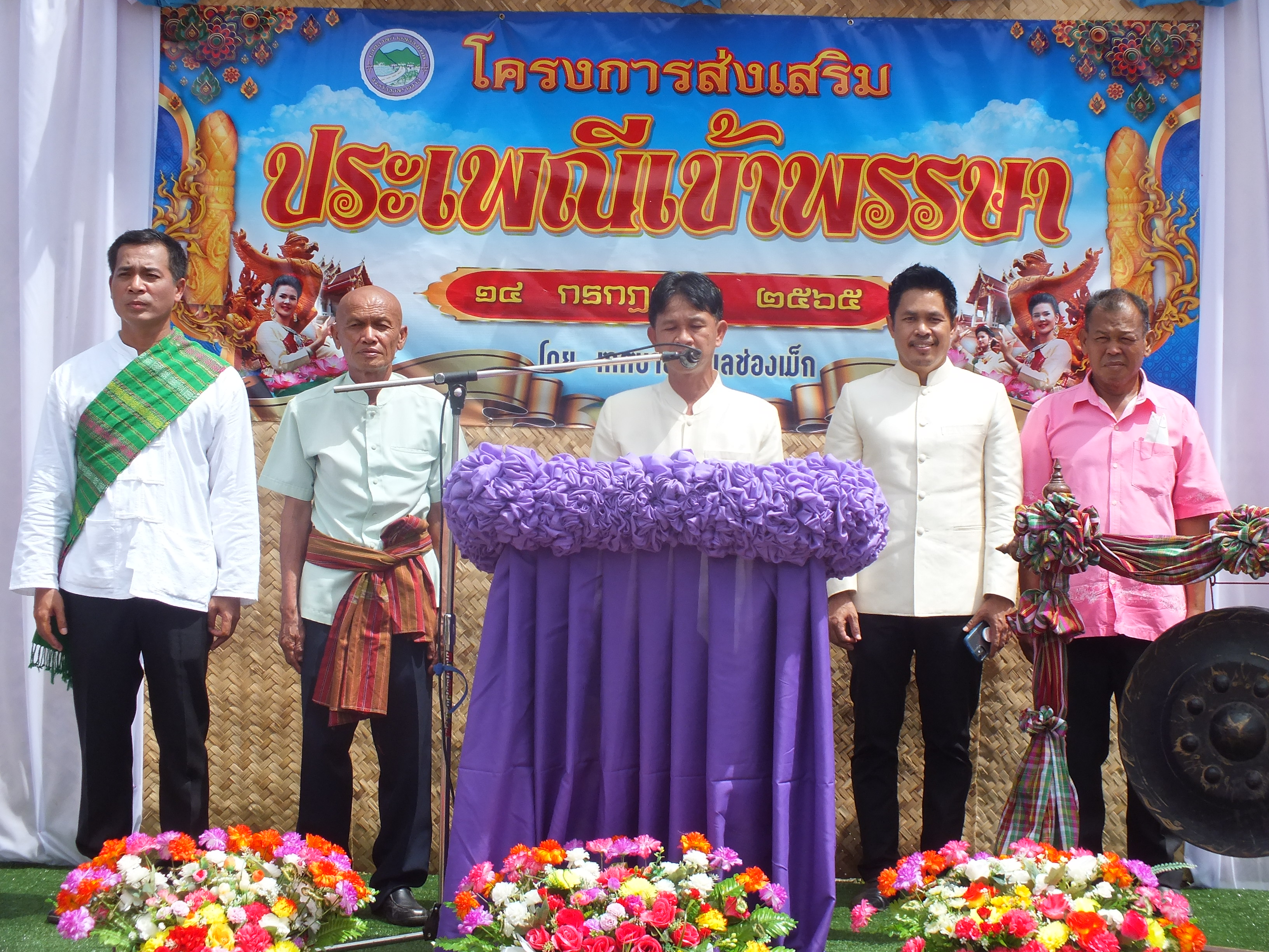 เมื่อวันที่ 14 กรกฎาคม 2565 นายบุญส่ง ทองเจริญ นายกเทศมนตรีตำบลช่องเม็ก เป็นประธาน กล่าวเปิดงานโครงการส่งเสริมประเพณีเข้าพรรษา จัดโดยเทศบาลตำบลช่องเม็ก โดยมีแขกผู้มีเกียรติจากภาคส่วนราชการและประชาชนเข้าร่วมในครั้งนี้ ณ บริเวณหน้าสำนักงานเทศบาลตำบลช่องเม็ก และมีการแสดงการฟ้อนรำจากนางรำเมืองเรืองแสง ก่อนนำต้นเทียนไปถวายยังวัดในพื้นที่เทศบาลทั้ง 4 แห่ง