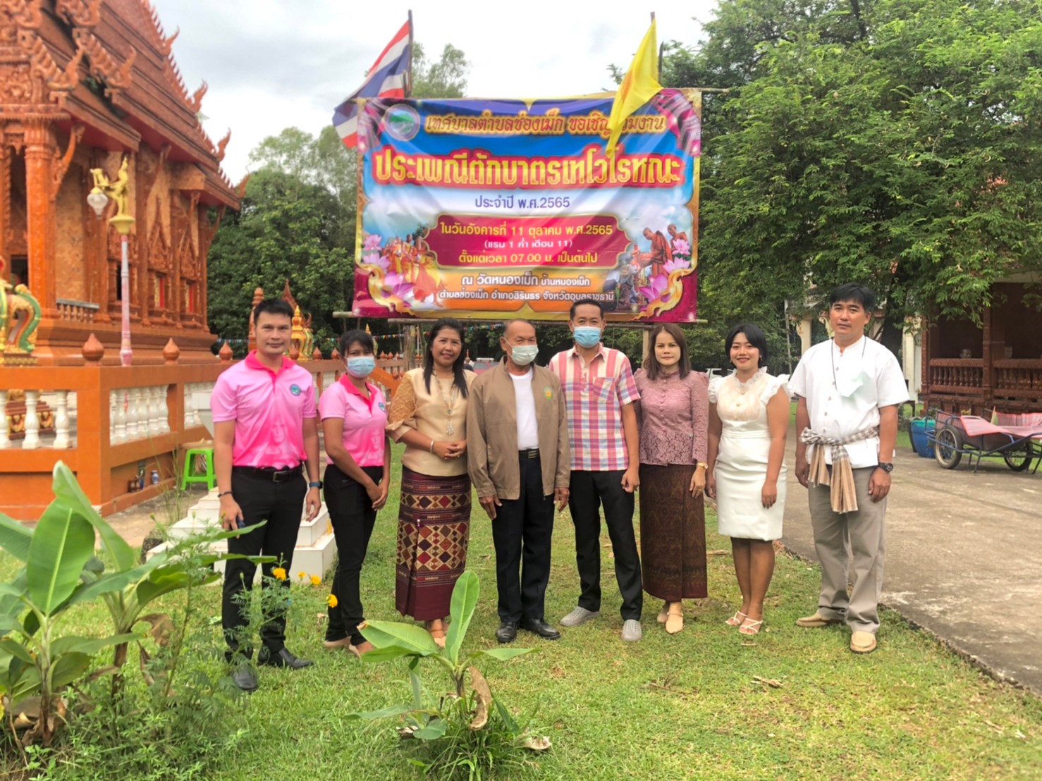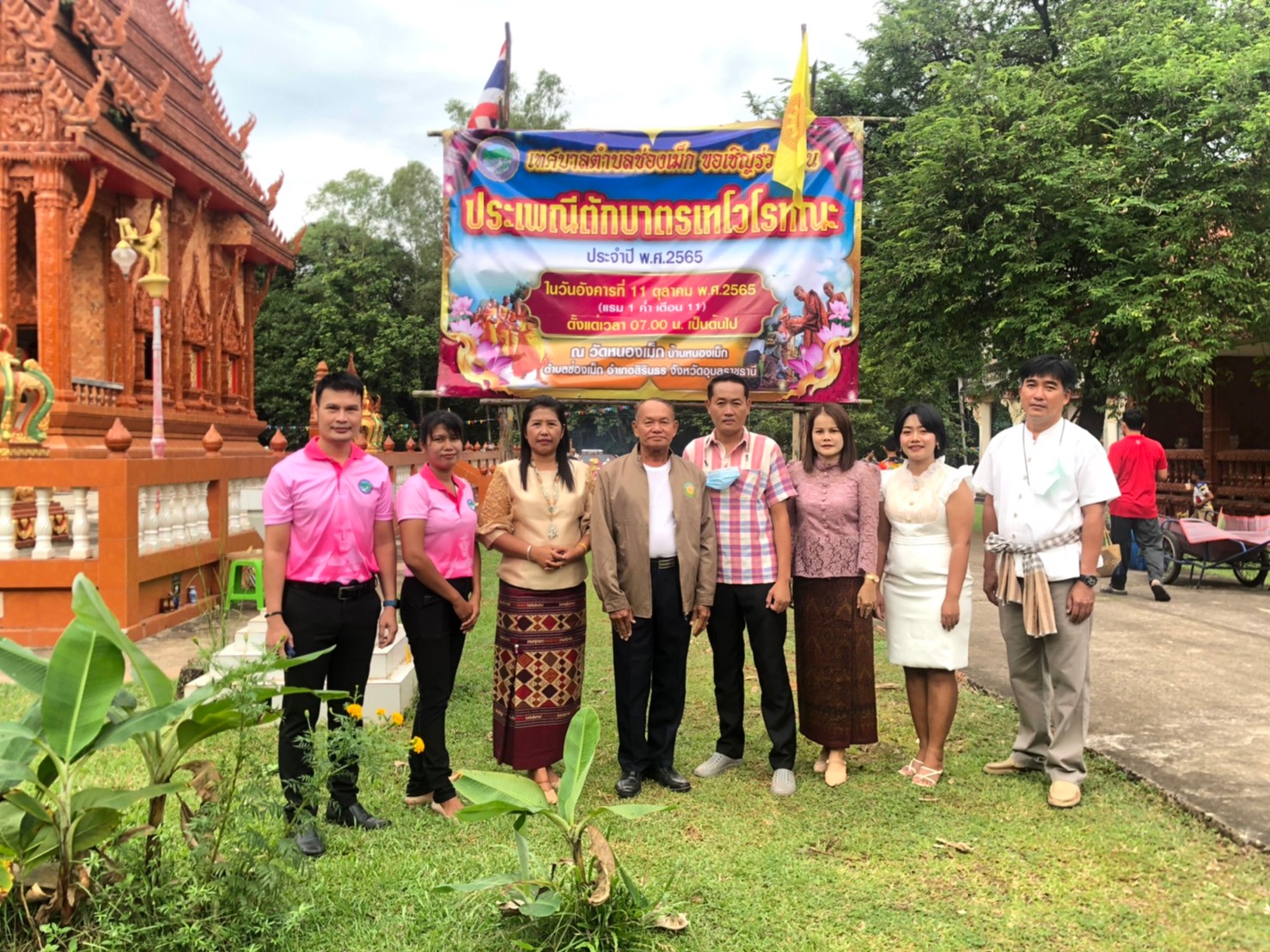 นายบุญส่ง ทองเจริญ นายกเทศมนตรีตำบลช่องเม็ก พร้อมด้วย คณะผู้บริหาร สมาชิกสภาเทศบาล ผู้ใหญ่บ้าน ผู้นำชุมชน และชาวบ้าน ร่วมทำบุญตักบาตร “ประเพณีตักบาตรเทโวโรหณะ” ประจำปี 2565 เพื่อเผยแพร่ สืบสานวัฒนธรรมประเพณีอันดีงามทางพระพุทธศาสนาให้คงอยู่สืบไป ซึ่งในการจัดงานดังกล่าวได้มีการแสดงธรรมเทศนา จำนวน 1 กัณฑ์ ตักบาตรข้าวสารอาหารแห้งแด่พระภิกษุ สามเณร และถวายภัตตาหารเช้าแด่พระภิกษุ สามเณร ณ วัดบ้านหนองเม็ก หมู่ที่ 1 ตำบลช่องเม็ก อำเภอสิรินธร จังหวัดอุบลราชธานี