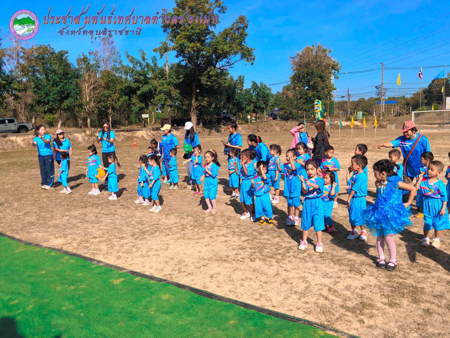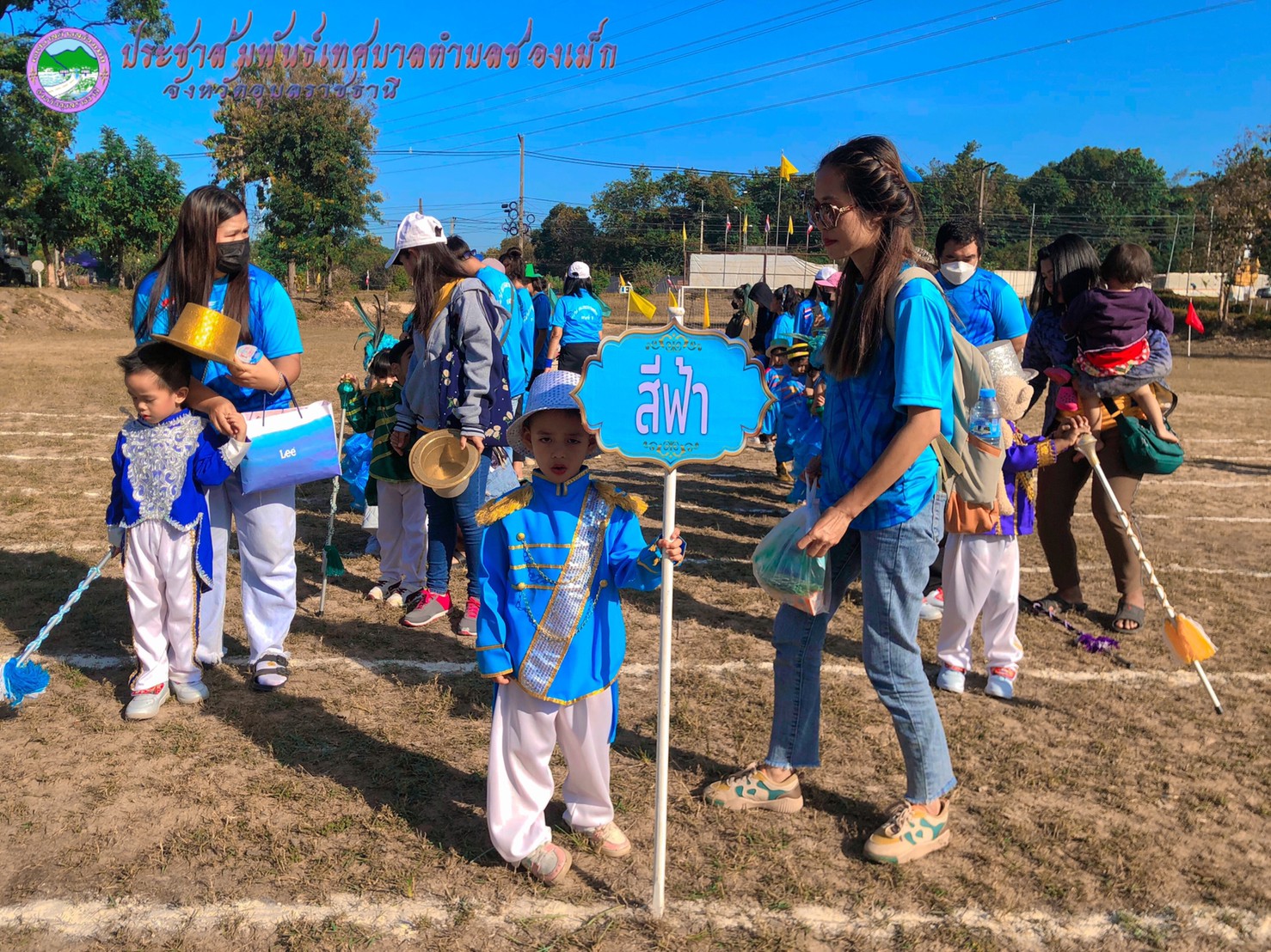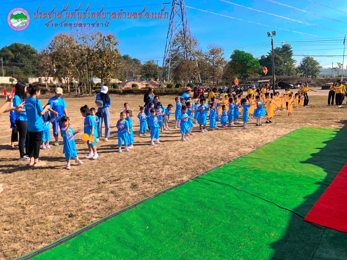 บรรยากาศพิธีเปิดการแข่งขันกีฬาสีภายในศูนย์พัฒนาเด็กเล็กและกีฬาผู้ปกครอง ศูนย์พัฒนาเด็กเล็กเทศบาลตำบลช่องเม็ก ครั้งที่ 3 ประจำปี พ.ศ. 2565 ในวันศุกร์ ที่ 16 ธันวาคม 2565
