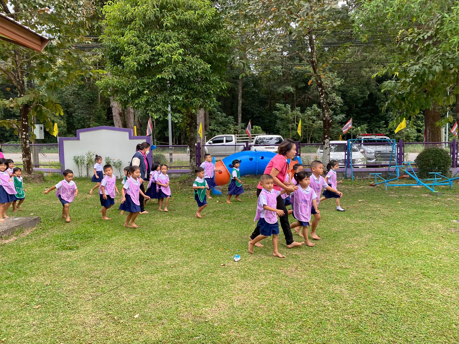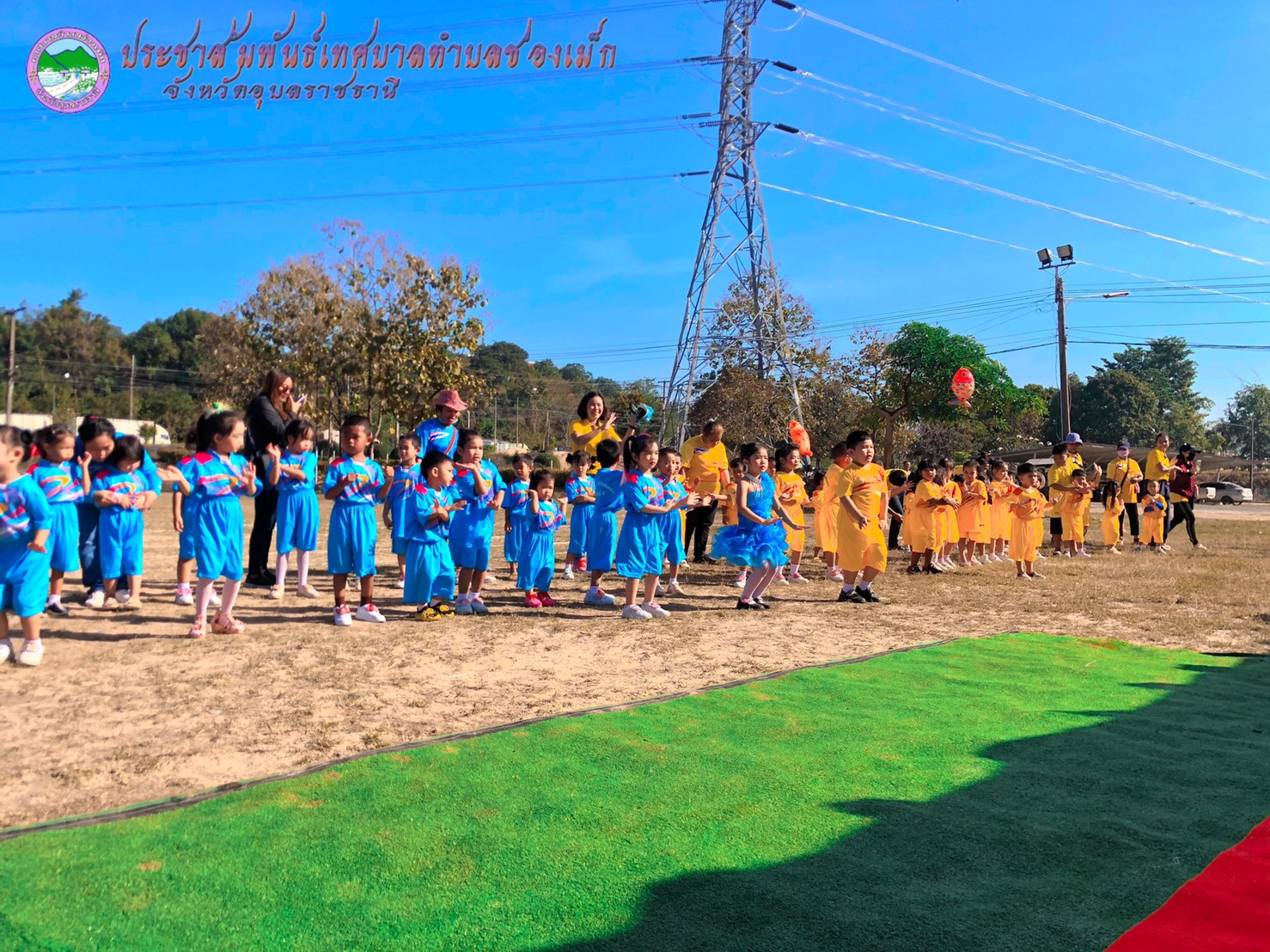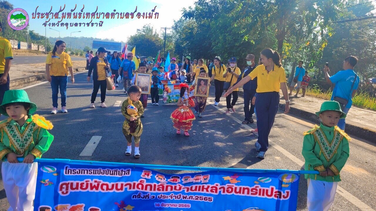 บรรยากาศพิธีเปิดการแข่งขันกีฬาสีภายในศูนย์พัฒนาเด็กเล็กและกีฬาผู้ปกครอง ศูนย์พัฒนาเด็กเล็กเทศบาลตำบลช่องเม็ก ครั้งที่ 3 ประจำปี พ.ศ. 2565 ในวันศุกร์ ที่ 16 ธันวาคม 2565