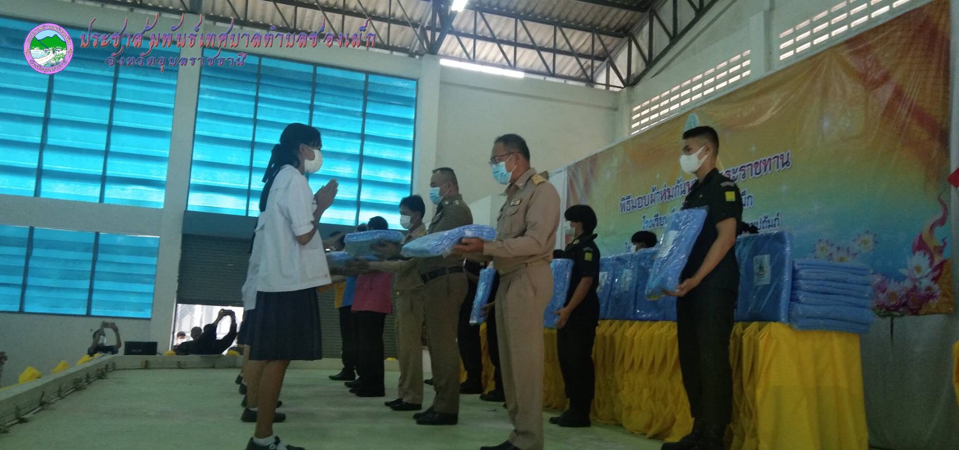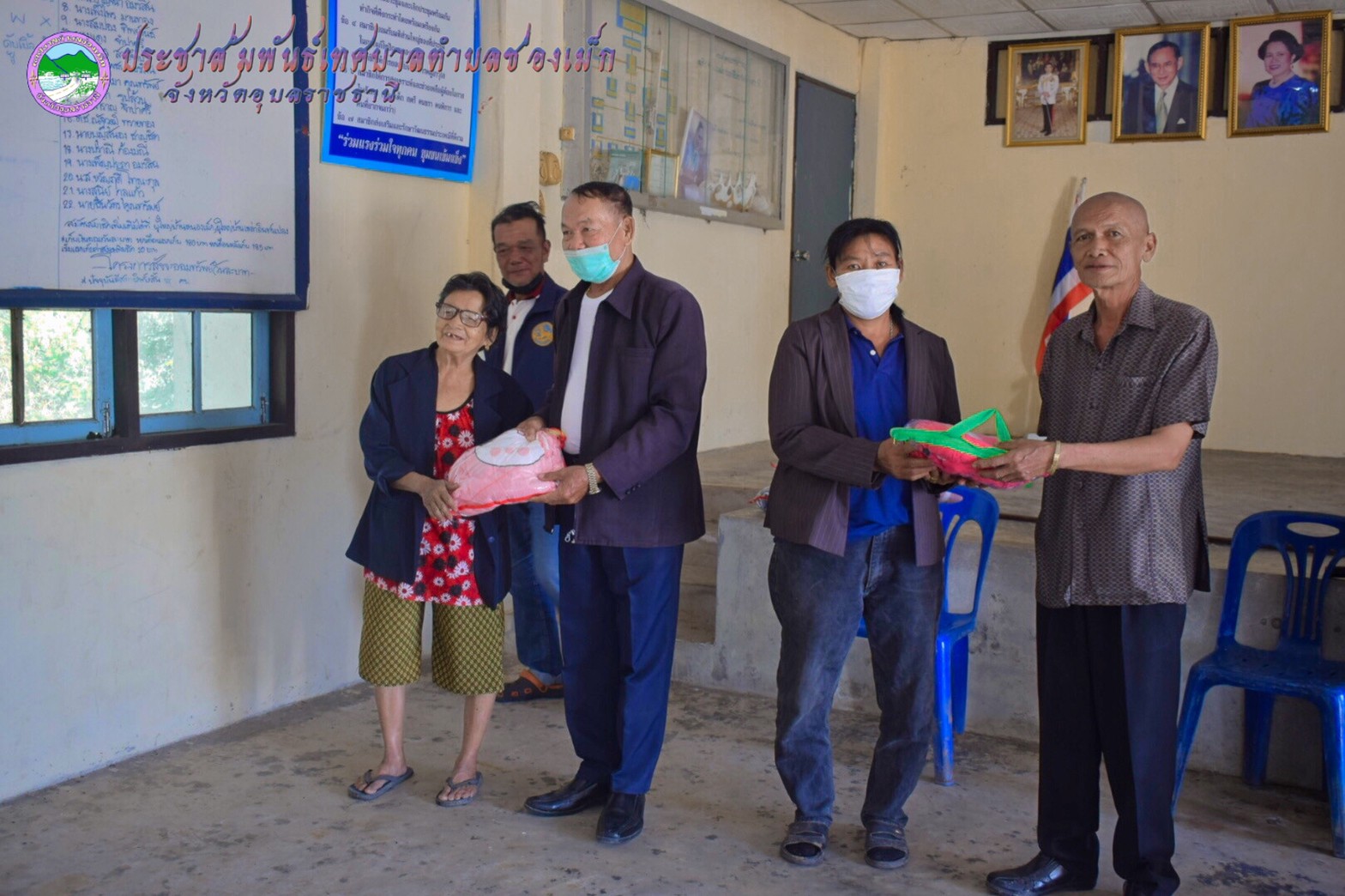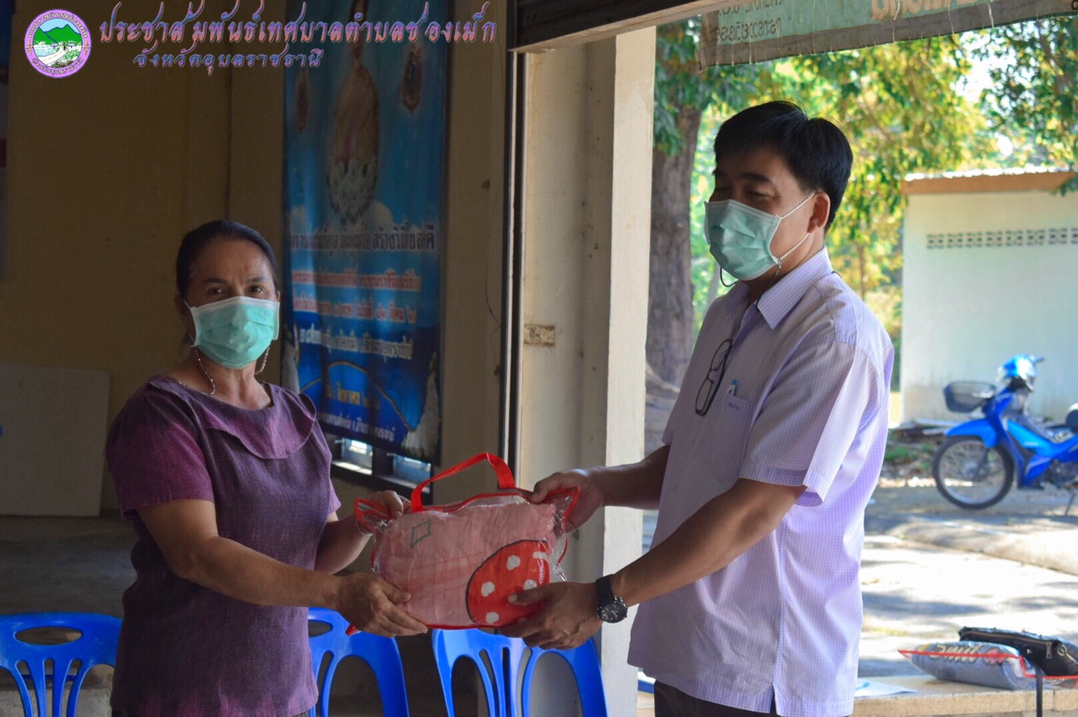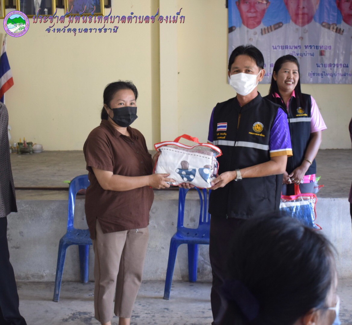 โดยนายกเทศมนตรีตำบลช่องเม็ก ทำพิธีมอบ ณ ศาลากลางบ้านทุกหมู่บ้าน