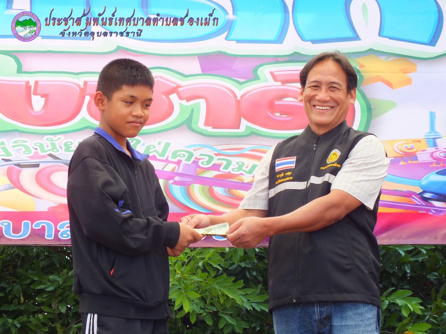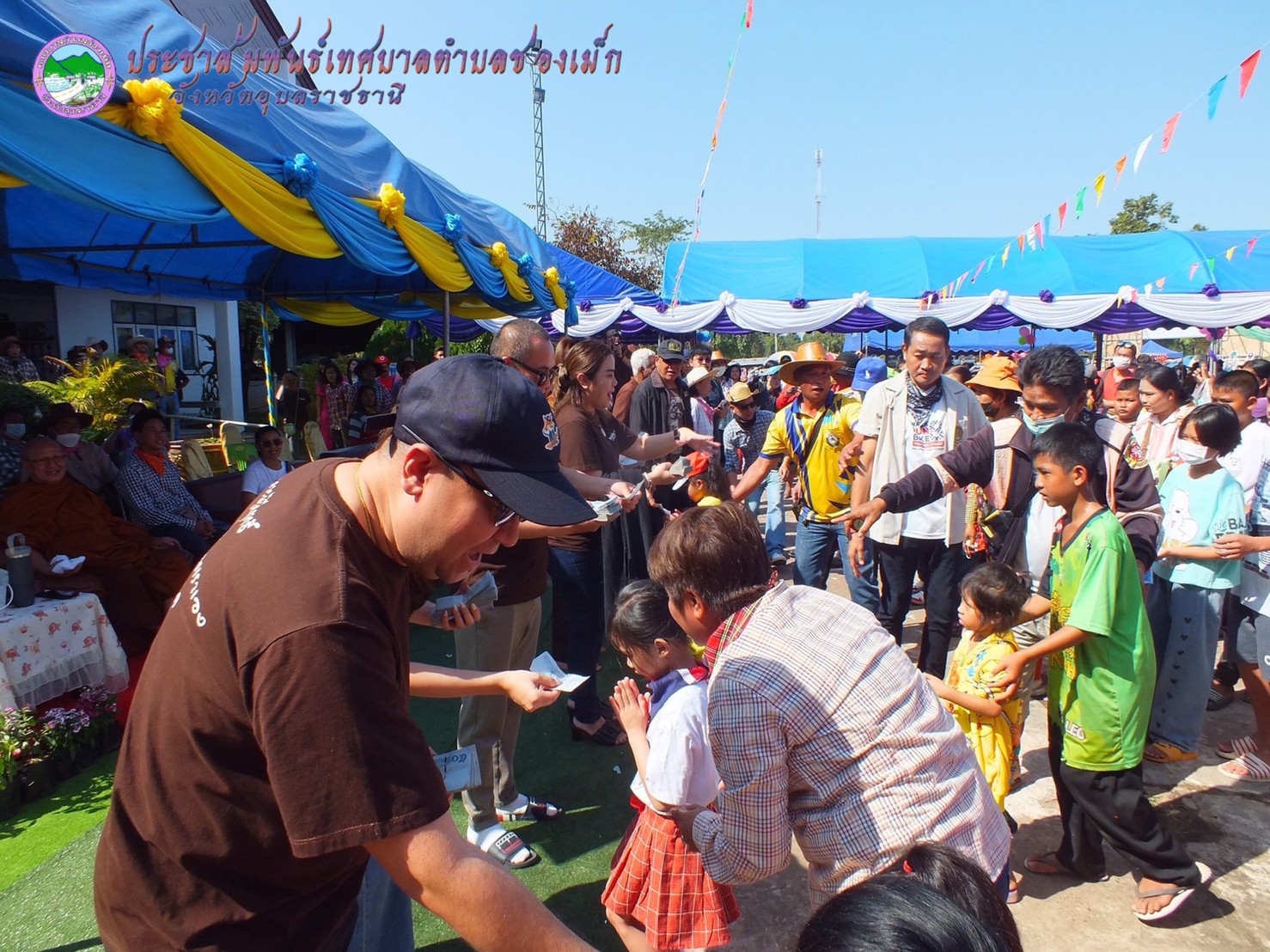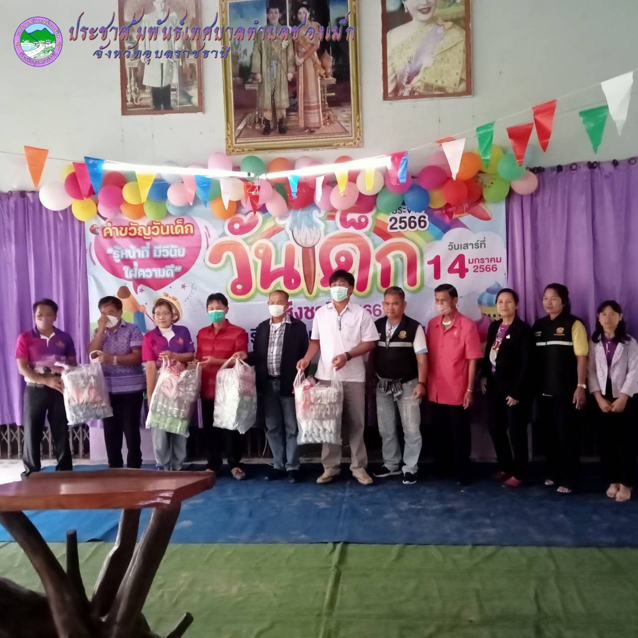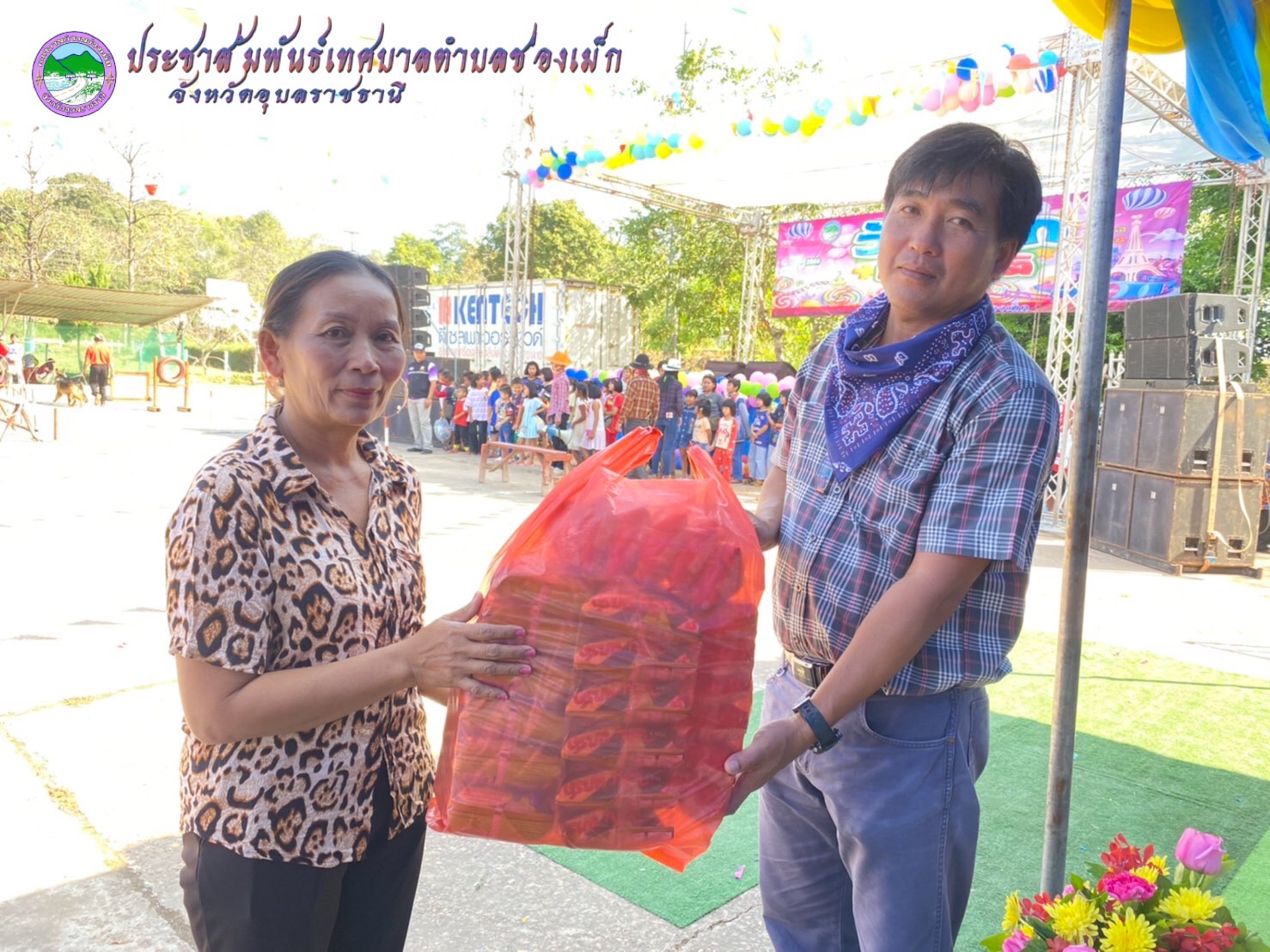 นายบุญส่ง ทองเจริญ นายกเทศมนตรีตำบลช่องเม็ก พร้อมด้วยคณะผู้บริหาร เดินทางไปมอบขนมเพื่อสนับสนุนเป็นของรางวัลในการจัดกิจกรรมและแจกในงานวันเด็กแห่งชาติ