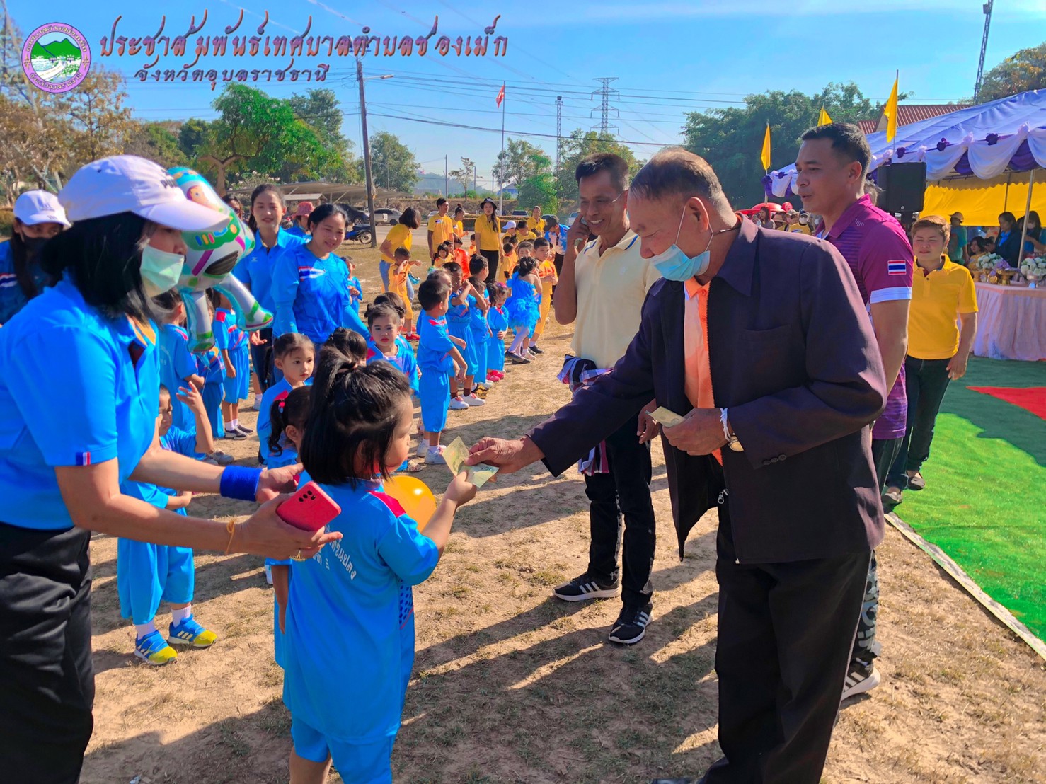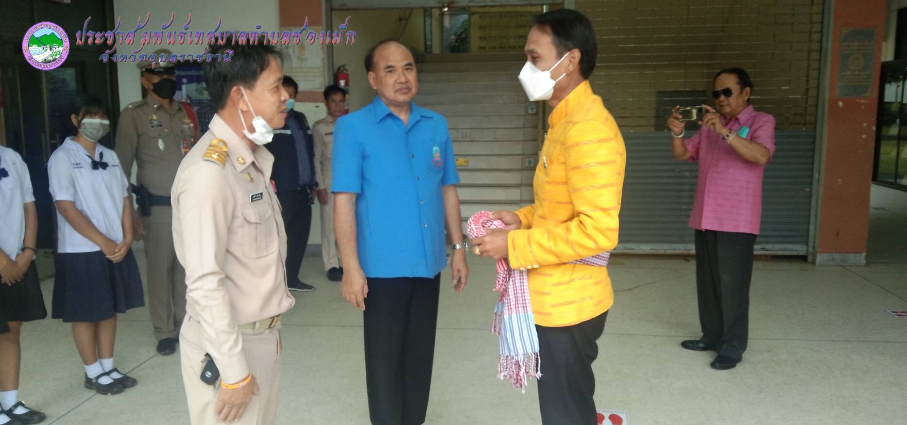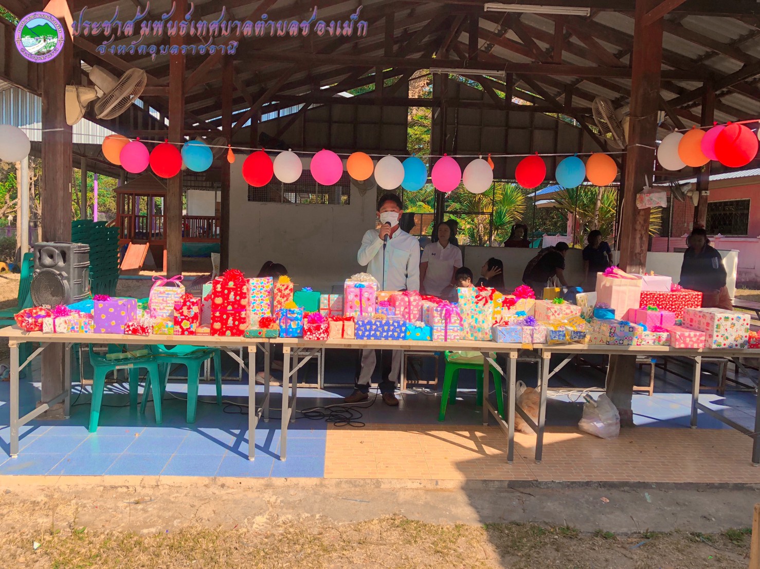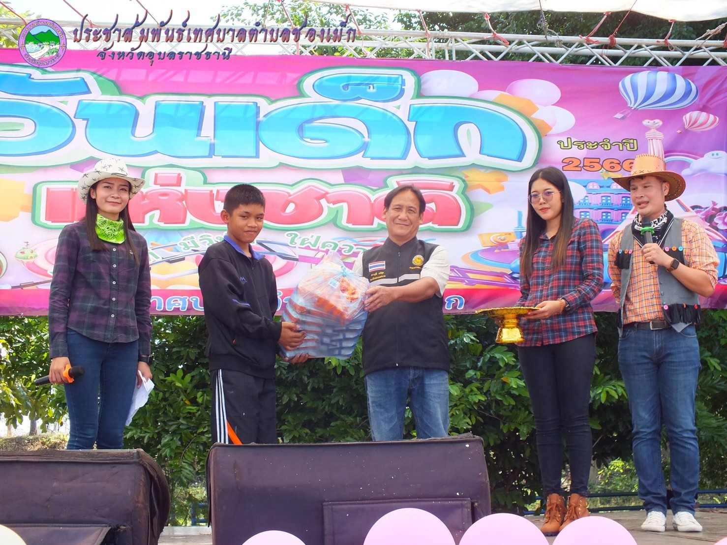 นายบุญส่ง ทองเจริญ นายกเทศมนตรีตำบลช่องเม็ก พร้อมด้วยคณะผู้บริหาร เดินทางไปมอบขนมเพื่อสนับสนุนเป็นของรางวัลในการจัดกิจกรรมและแจกในงานวันเด็กแห่งชาติ