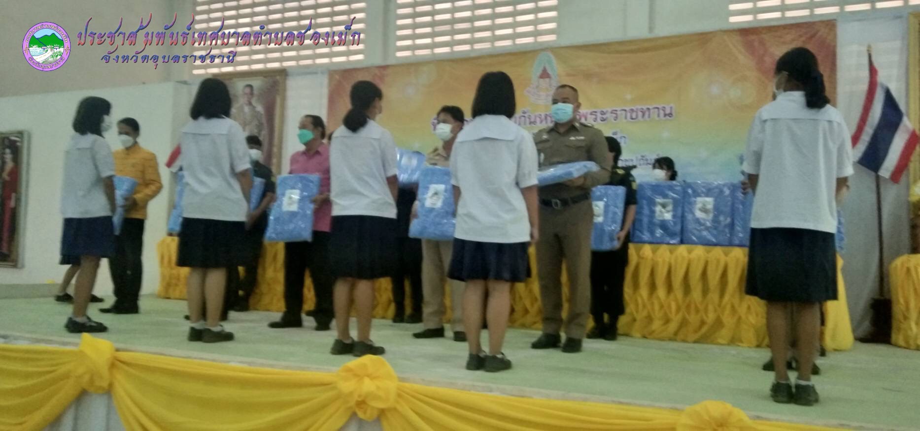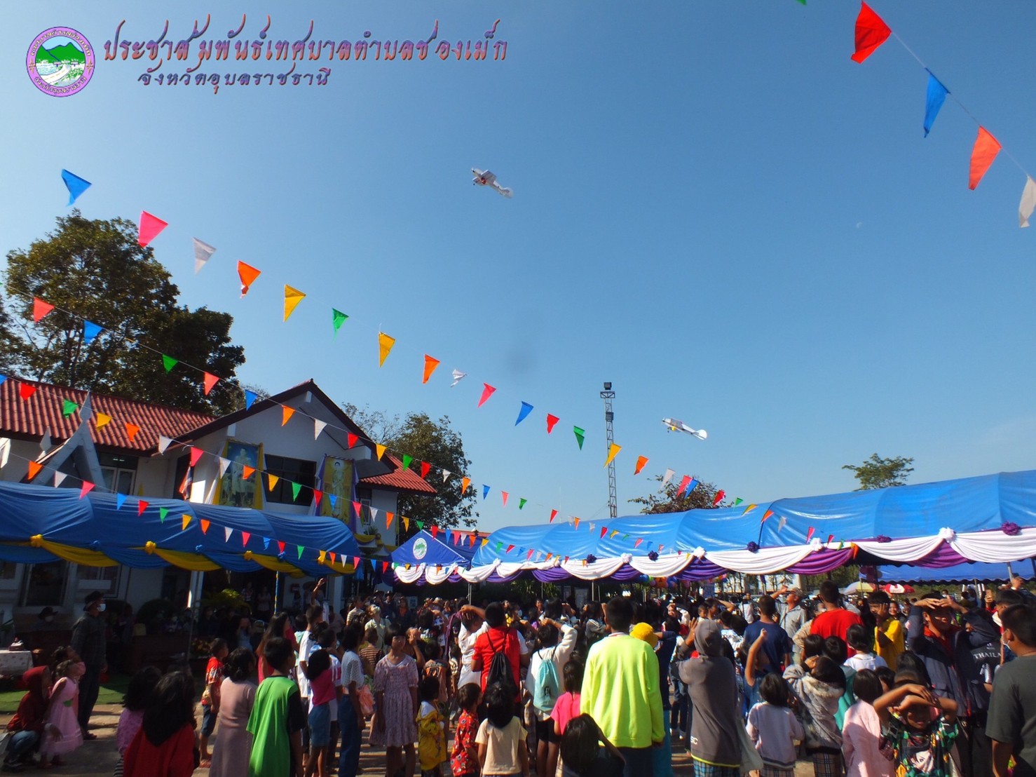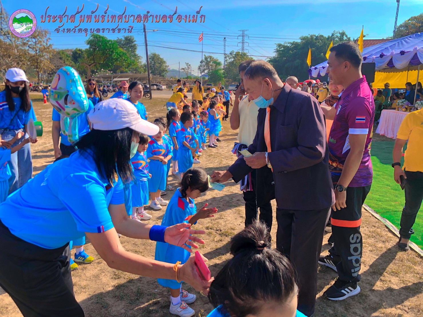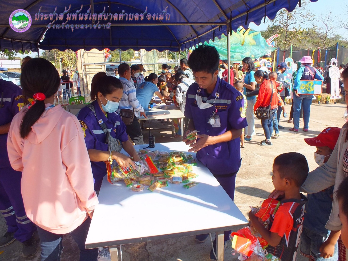 นายบุญส่ง ทองเจริญ นายกเทศมนตรีตำบลช่องเม็ก พร้อมด้วยคณะผู้บริหาร เดินทางไปมอบขนมเพื่อสนับสนุนเป็นของรางวัลในการจัดกิจกรรมและแจกในงานวันเด็กแห่งชาติ