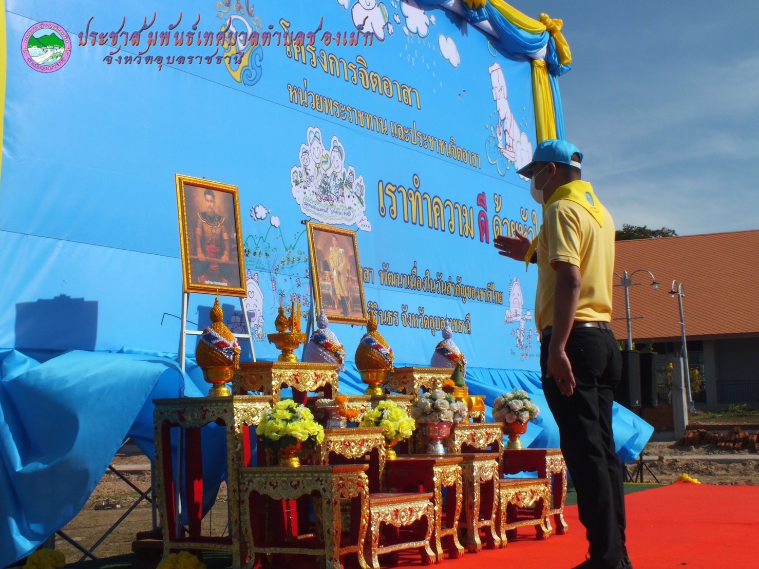 ร่วมกิจกรรมจิตอาสาพระราชทาน kick off “เราทำความดีด้วยหัวใจ” พัฒนาปรับปรุงภูมิทัศน์และทำความสะอาด ณ วัดบ้านโชครังสรรค์ ตำบลคันไร่ อำเภอสิรินธร จังหวัดอุบลราชธานี