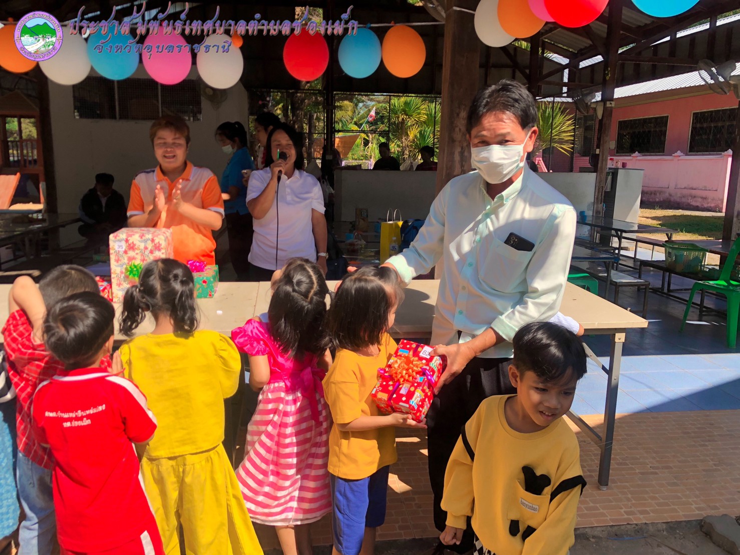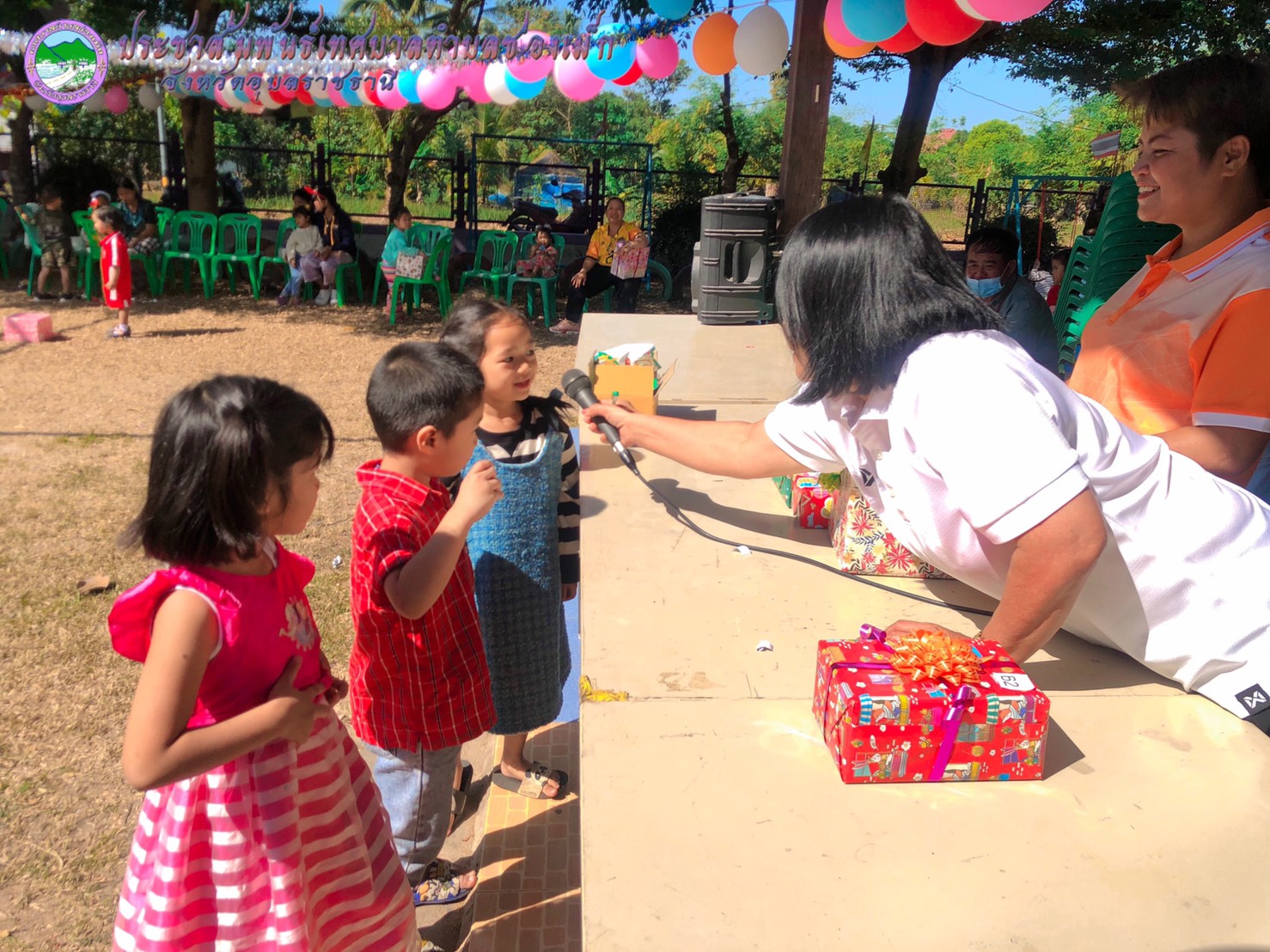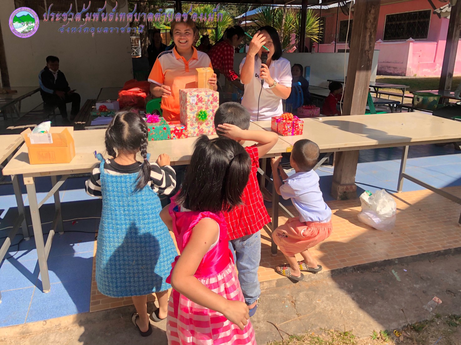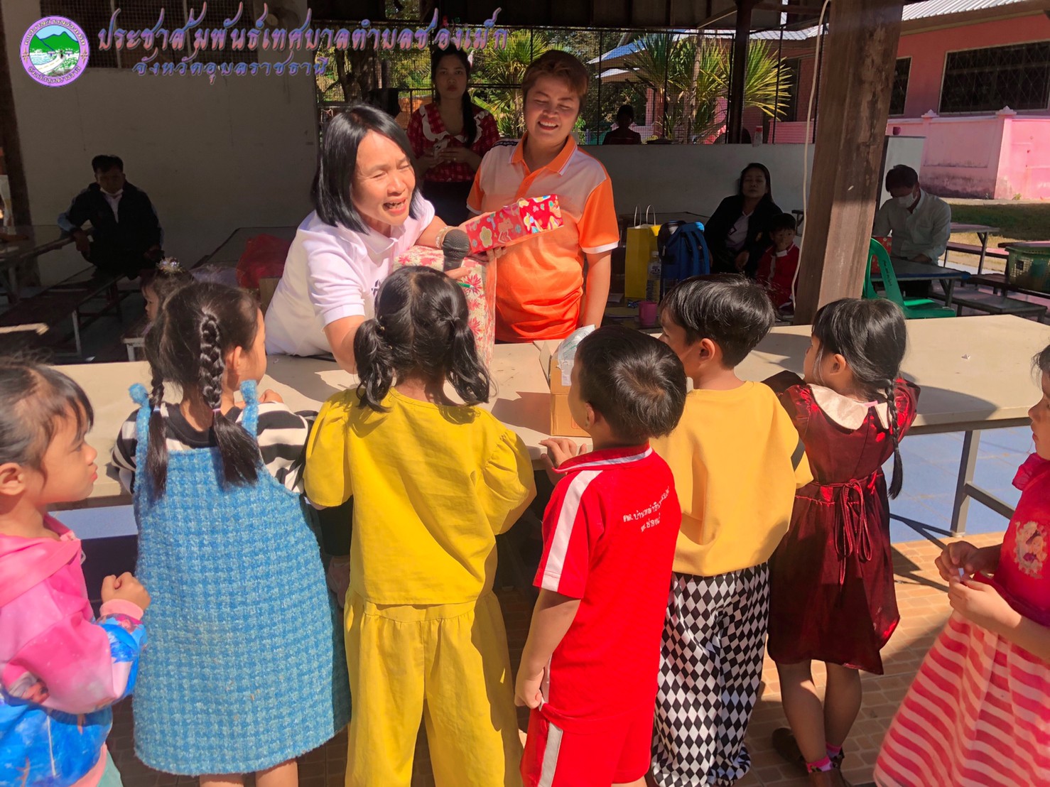 และนางมลัยพร ต้นสาย สมาชิกสภาเทศบาล ร่วมจับฉลากของขวัญปีใหม่กับผู้อำนวยการกองการศึกษาคณะครูและนักเรียนศูนย์พัฒนาเด็กเล็กบ้านเหล่าอินทร์แปลง