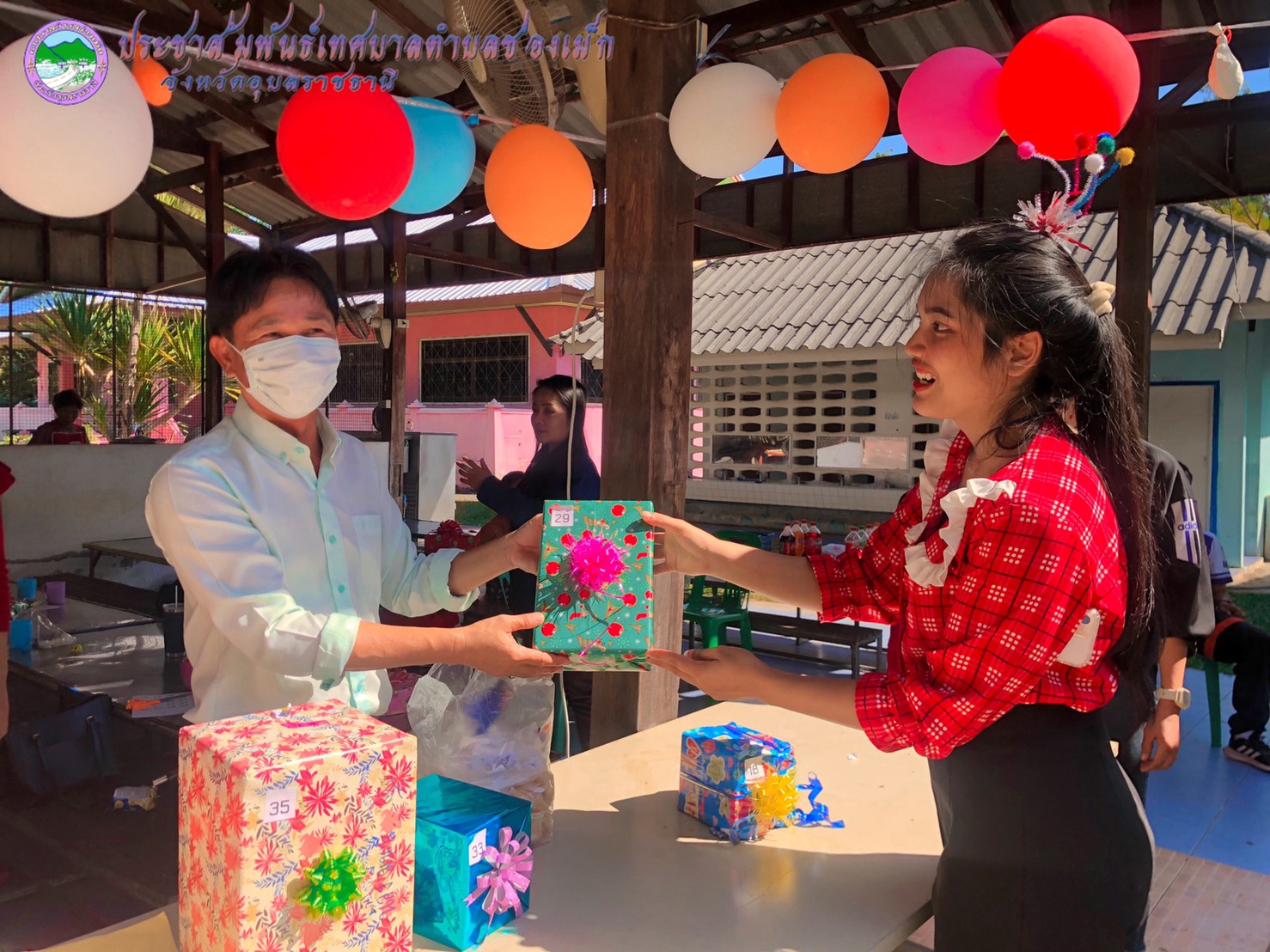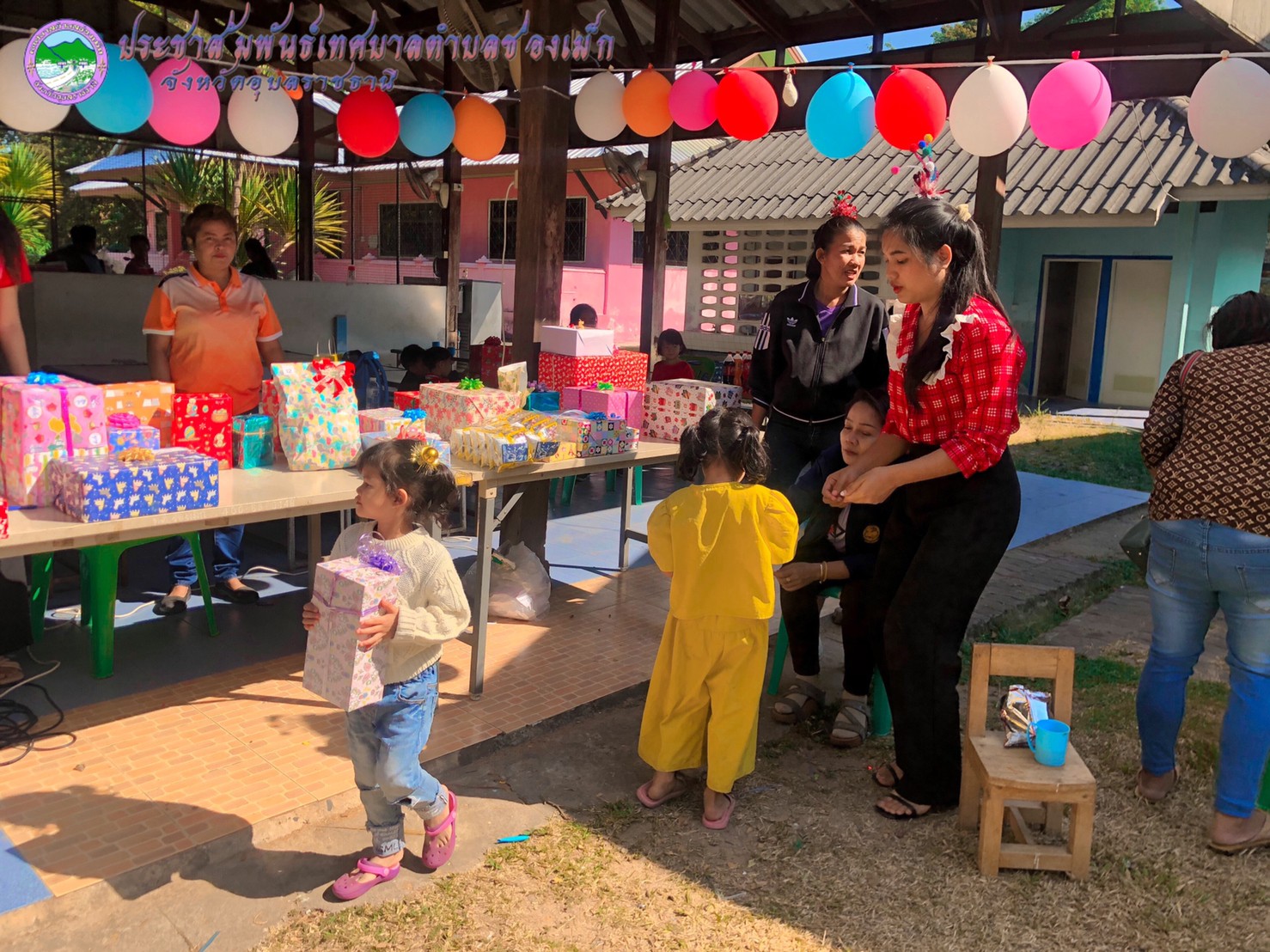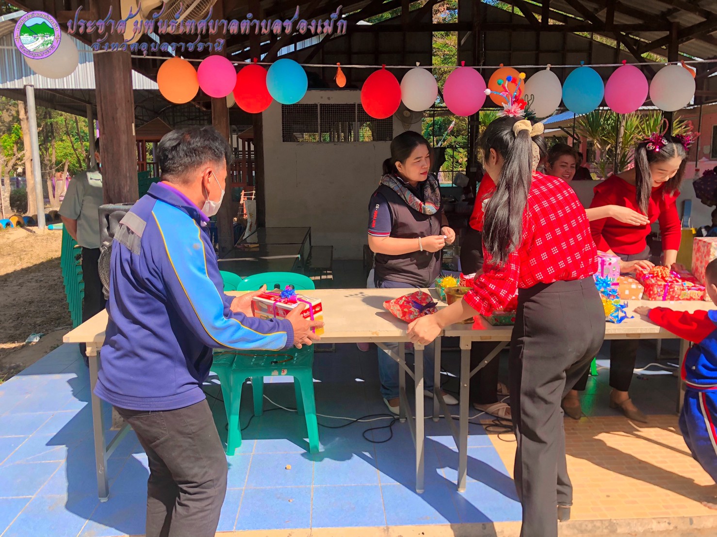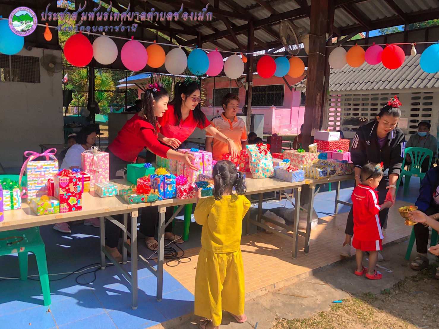 และนางมลัยพร ต้นสาย สมาชิกสภาเทศบาล ร่วมจับฉลากของขวัญปีใหม่กับผู้อำนวยการกองการศึกษาคณะครูและนักเรียนศูนย์พัฒนาเด็กเล็กบ้านเหล่าอินทร์แปลง