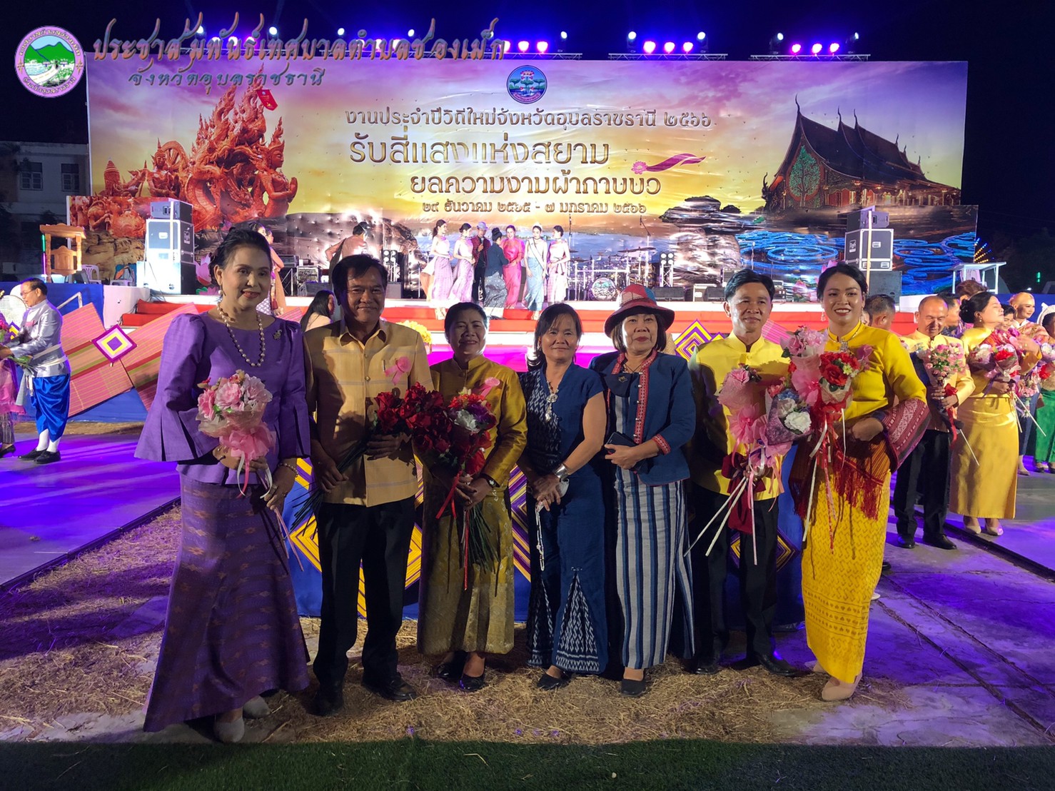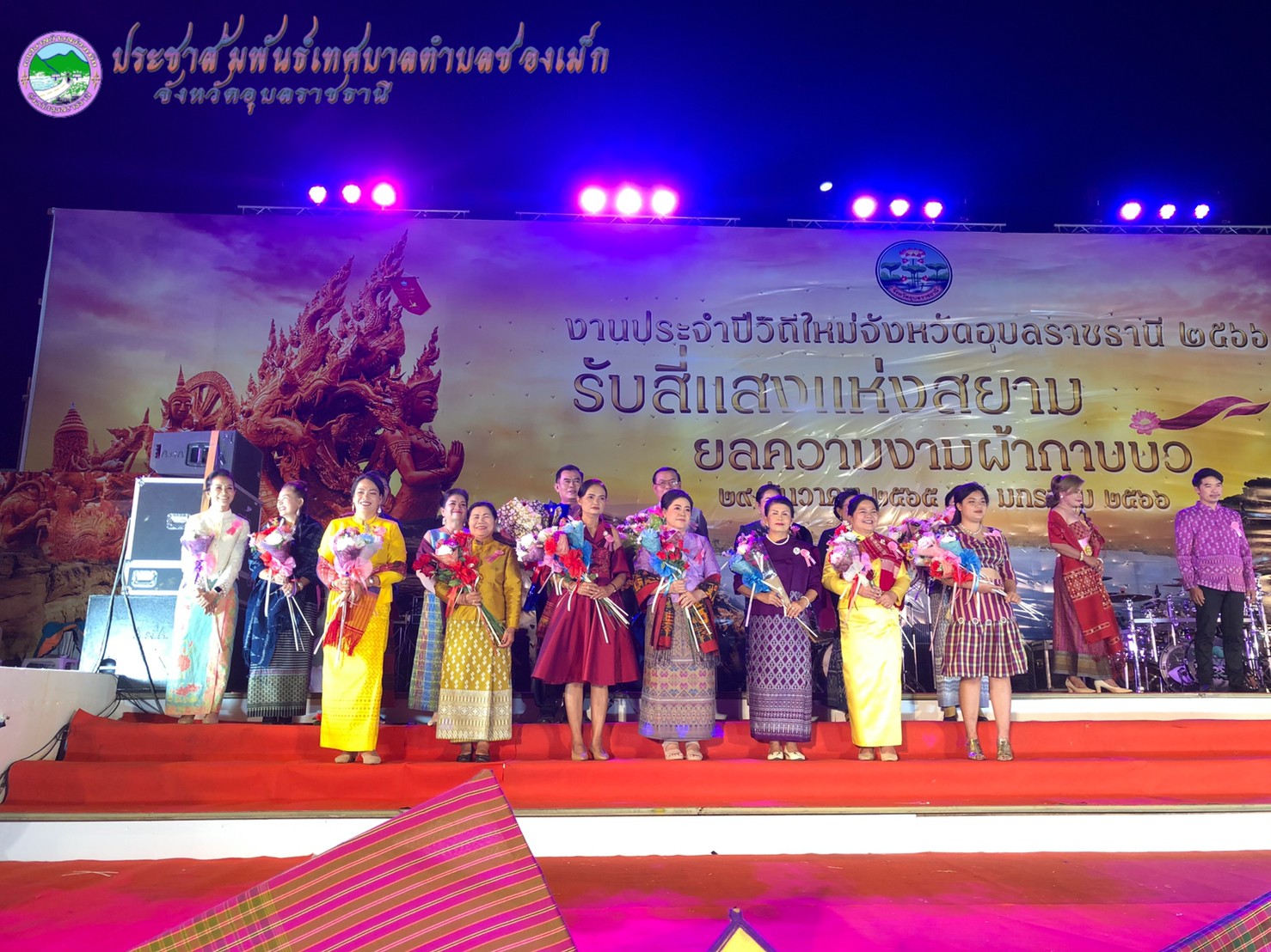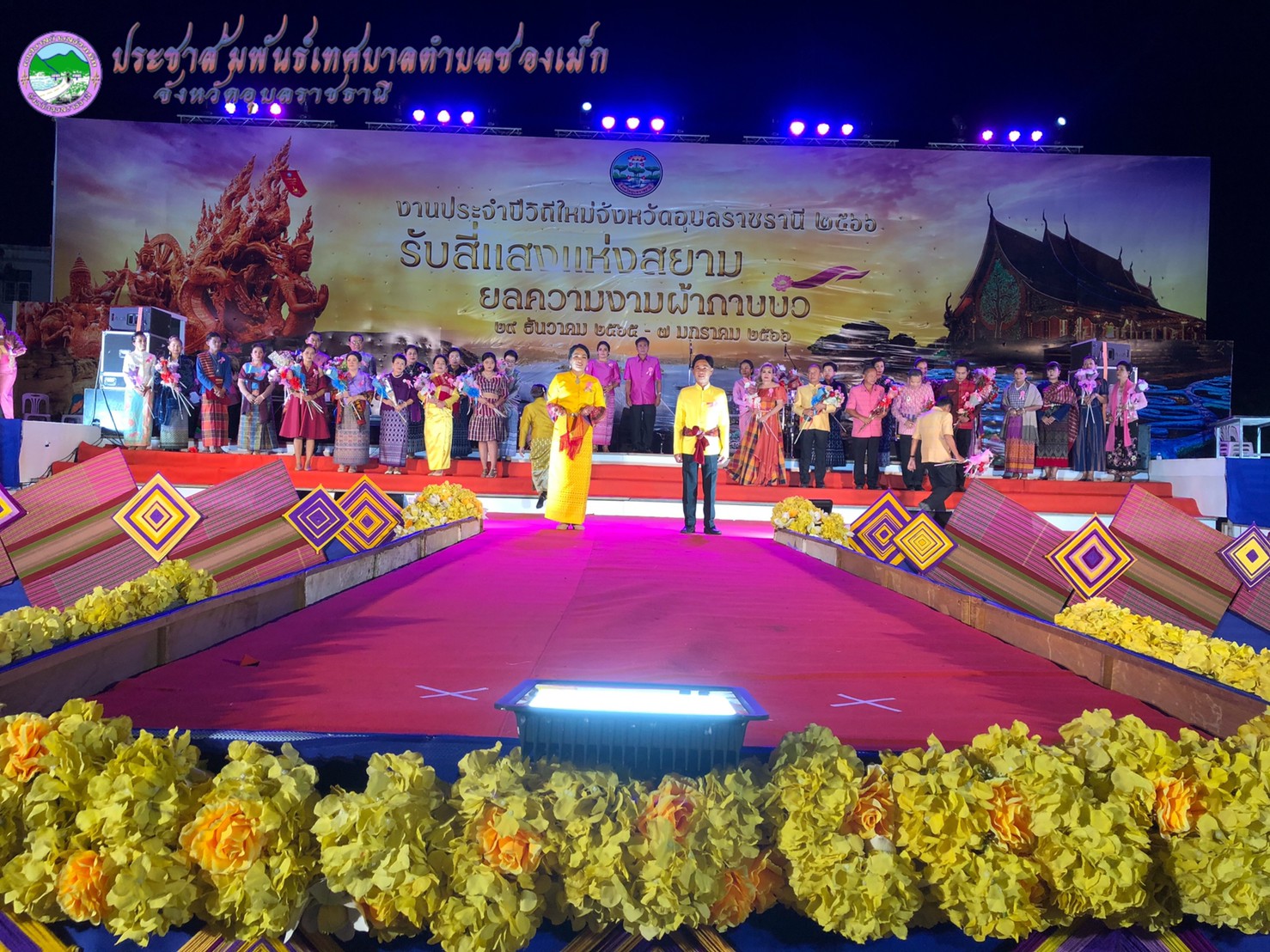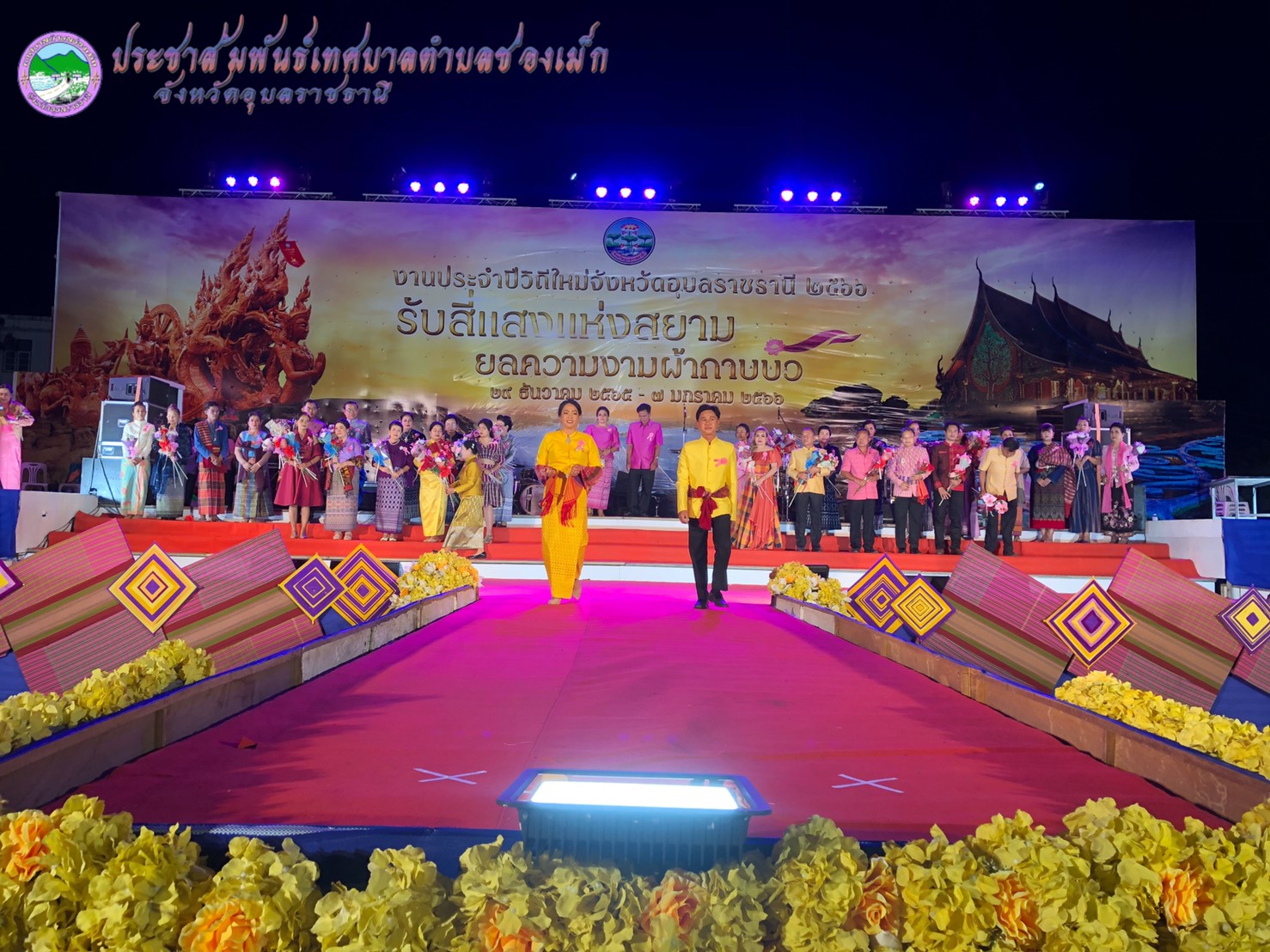 อุบลราชธานี เดินแบบผ้าไทยการกุศล “ผ้าไทยใส่ให้สนุก” สืบสานอนุรักษ์ศิลป์ผ้าถิ่นไทย ดำรงไว้ในแผ่นดิน” ในงานประจำปีและงานกาชาดจังหวัดอุบลราชธานี ปี 2566 "รับสี่แสงแห่งสยาม ยลความงาม ผ้ากาบบัว"