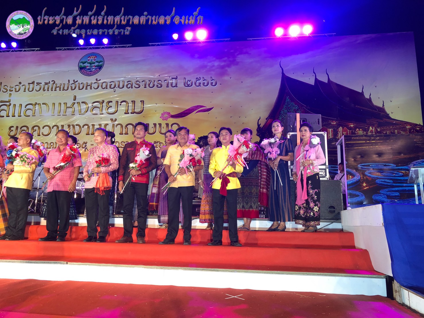 เมื่อคืนวันที่ (2 ม.ค. 2566) นายบุญส่ง ทองเจริญ นายกเทศมนตรีตำบลช่องเม็ก พร้อมด้วยนางจิตติภรณ์ ทองเจริญ ร่วมเดินแบบผ้าไทยเพื่อสืบสานอนุรักษ์ศิลป์ผ้าถิ่นไทย ดำรงไว้ในแผ่นดิน และอนุรักษ์มรดกทางวัฒนธรรม ส่งผลให้เศรษฐกิจฐานรากเข้มแข็ง สามารถสร้างรายได้กระจายสู่ชุมชนอย่างรวดเร็วและทั่วถึง