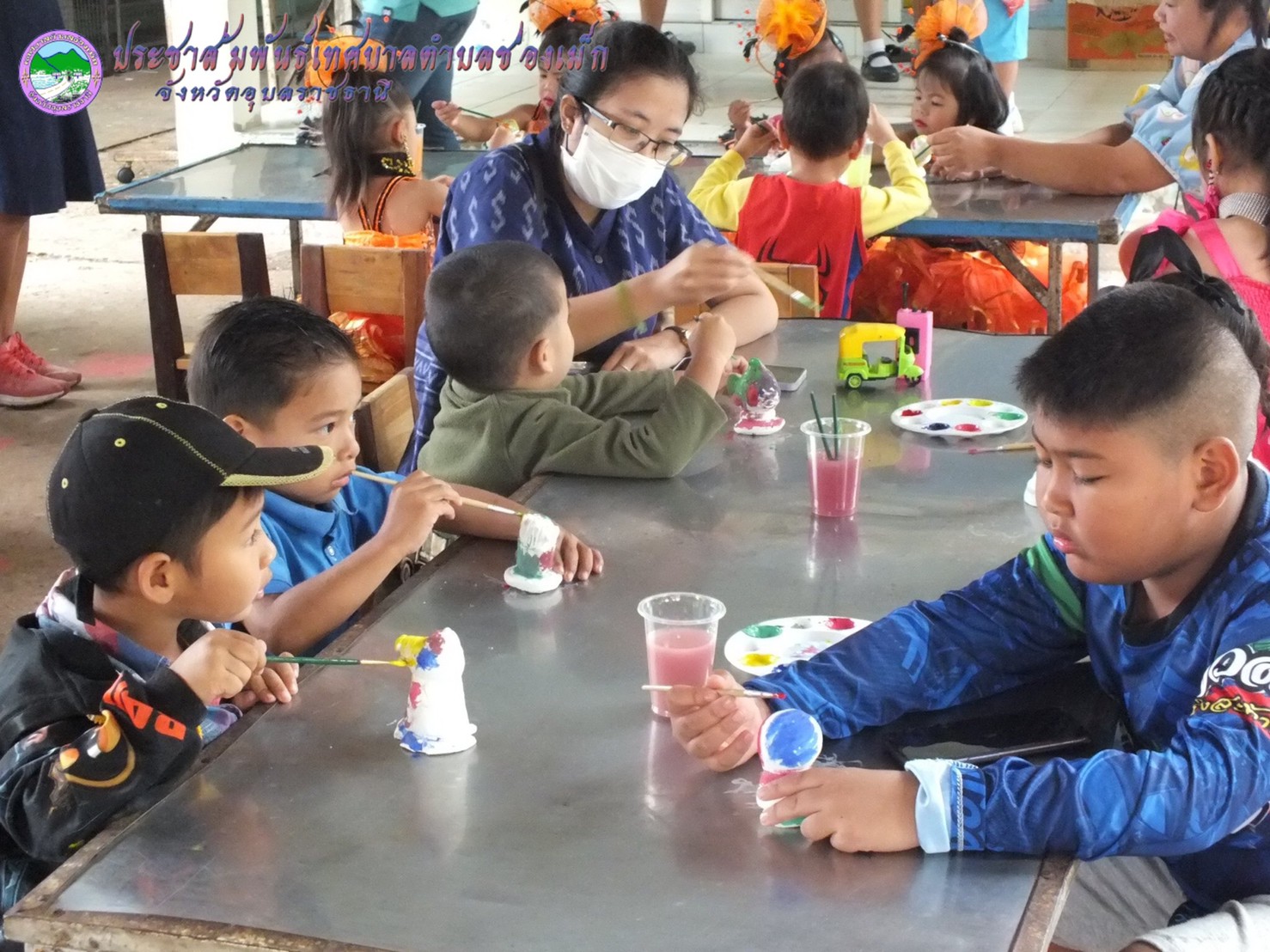 นักเรียนชั้นปฐมวัยปีที่ 3 และกิจกรรมต่างๆมากมาย ไม่ว่าจะเป็น การตอบคำถาม การเล่นเกม การระบายสีภาพ และการระบายสีปูนปลาสเตอร์ ณ ศูนย์พัฒนาเด็กเล็กบ้านเหล่าอินทร์แปลง ตำบลช่องเม็ก อำเภอสิรินธร จังหวัดอุบลราชธานี