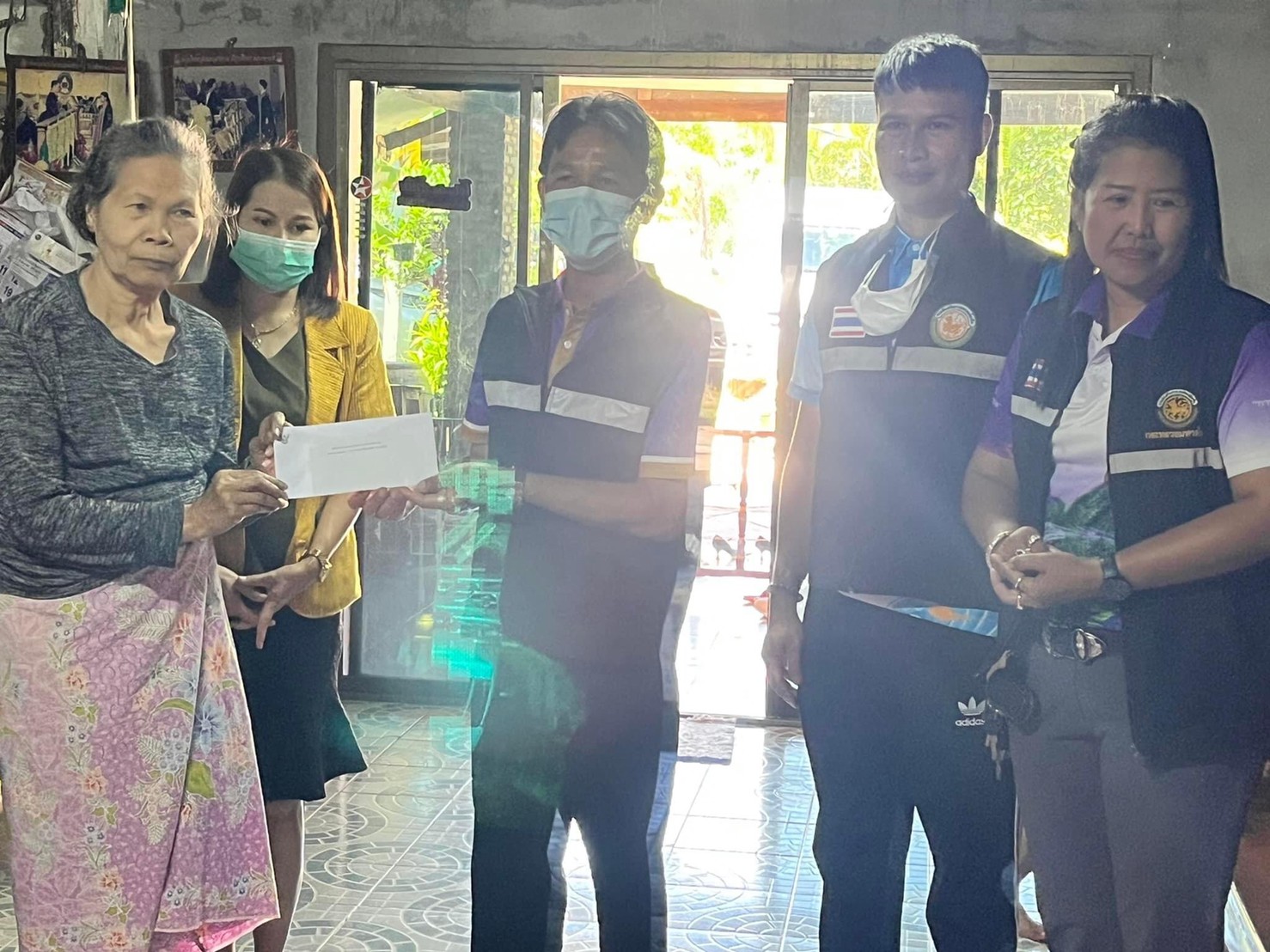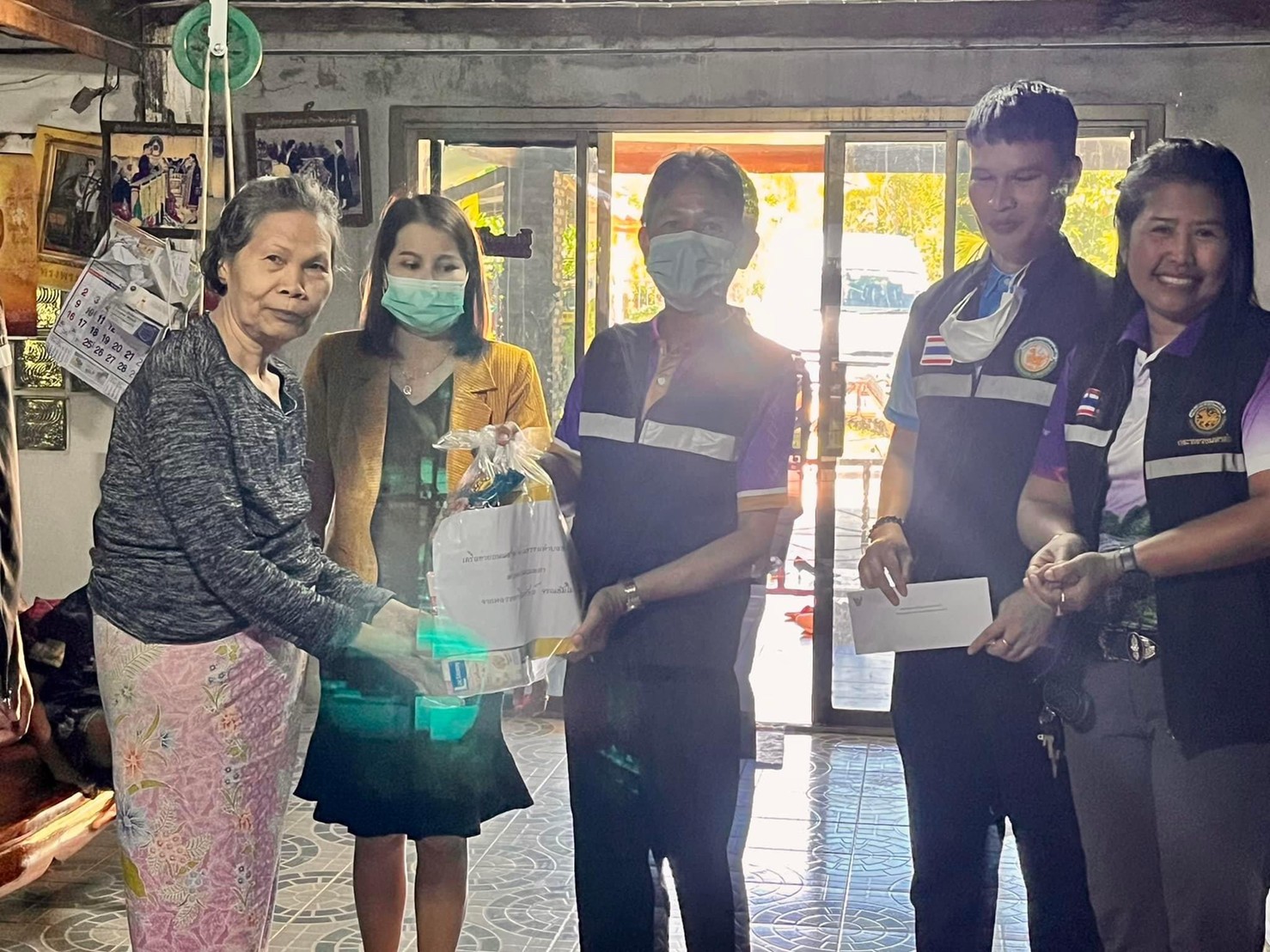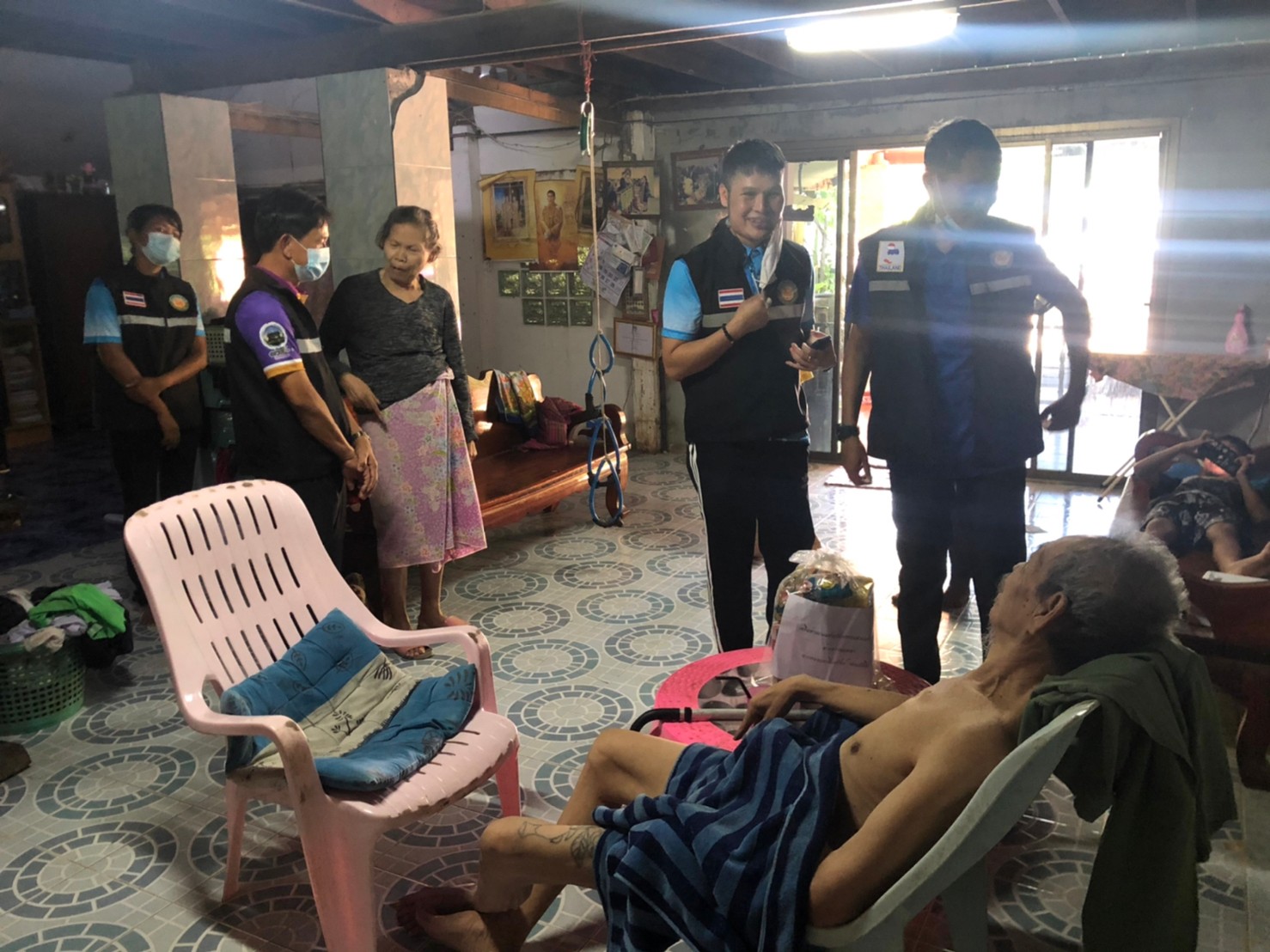 นายธนกฤต สายสมบัติ นักพัฒนาชุมชน และเจ้าหน้าที่เทศบาล ลงพื้นมอบผ้าห่มกันหนาว