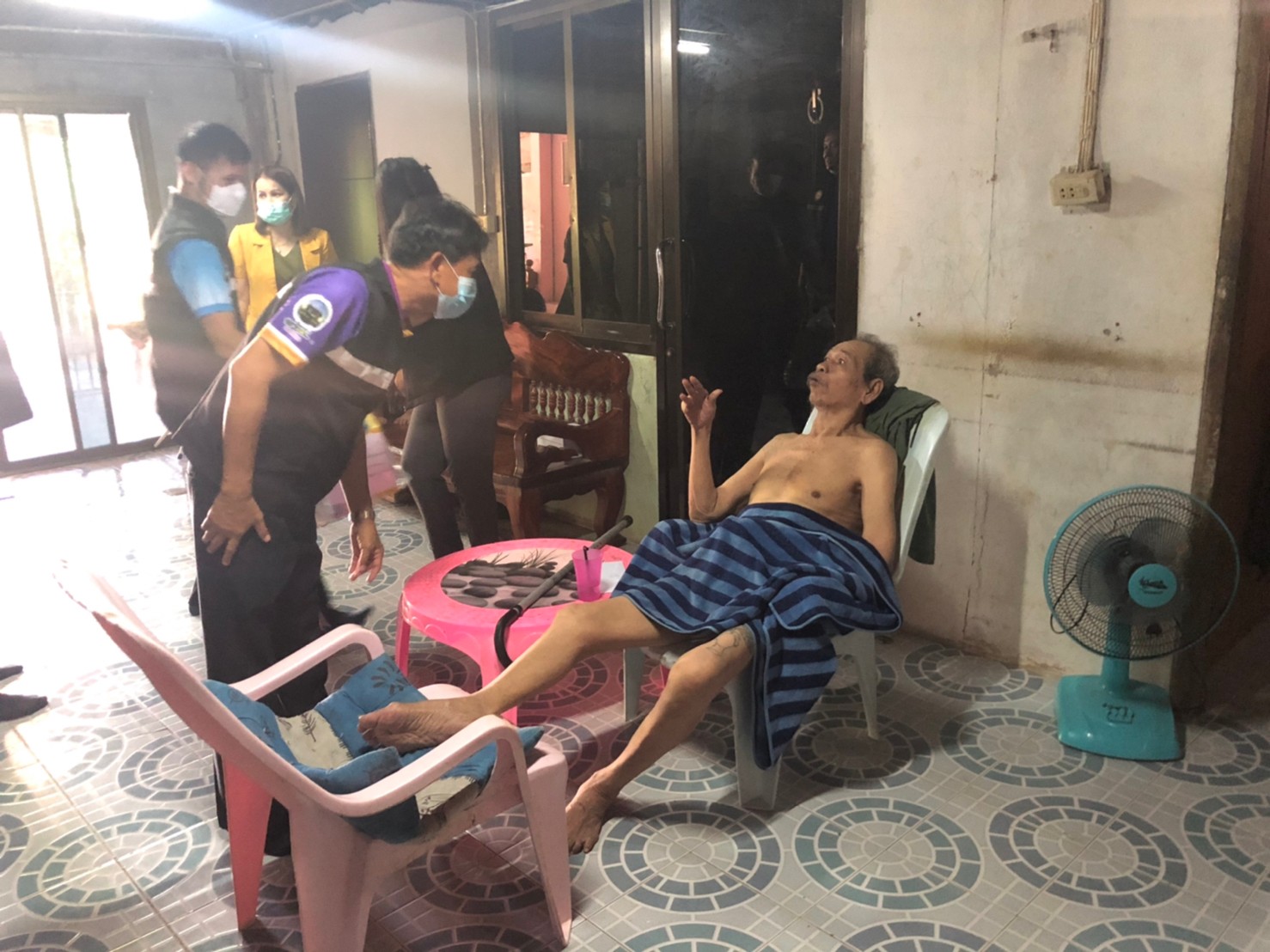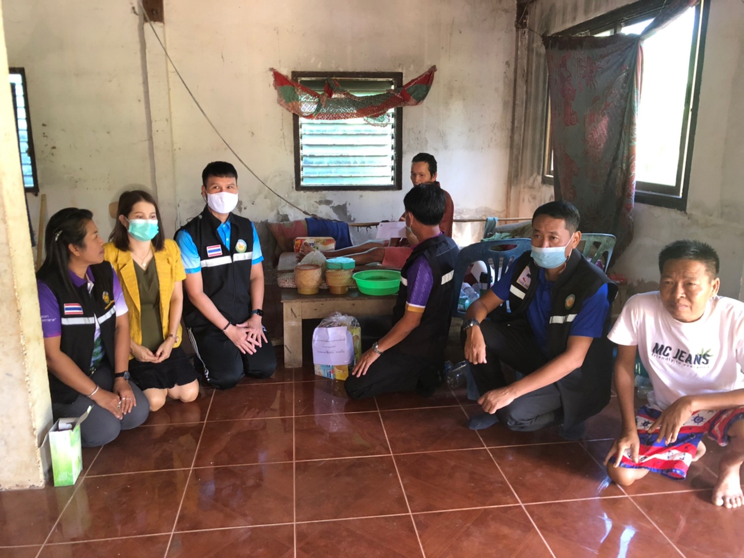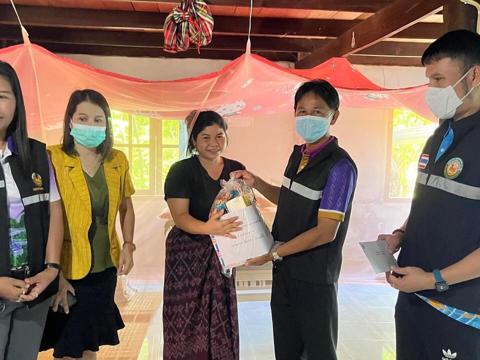 นายธนกฤต สายสมบัติ นักพัฒนาชุมชน และเจ้าหน้าที่เทศบาล ลงพื้นมอบผ้าห่มกันหนาว